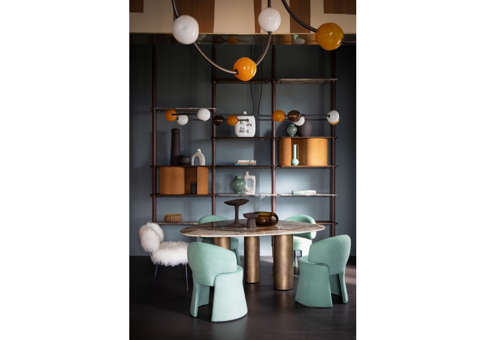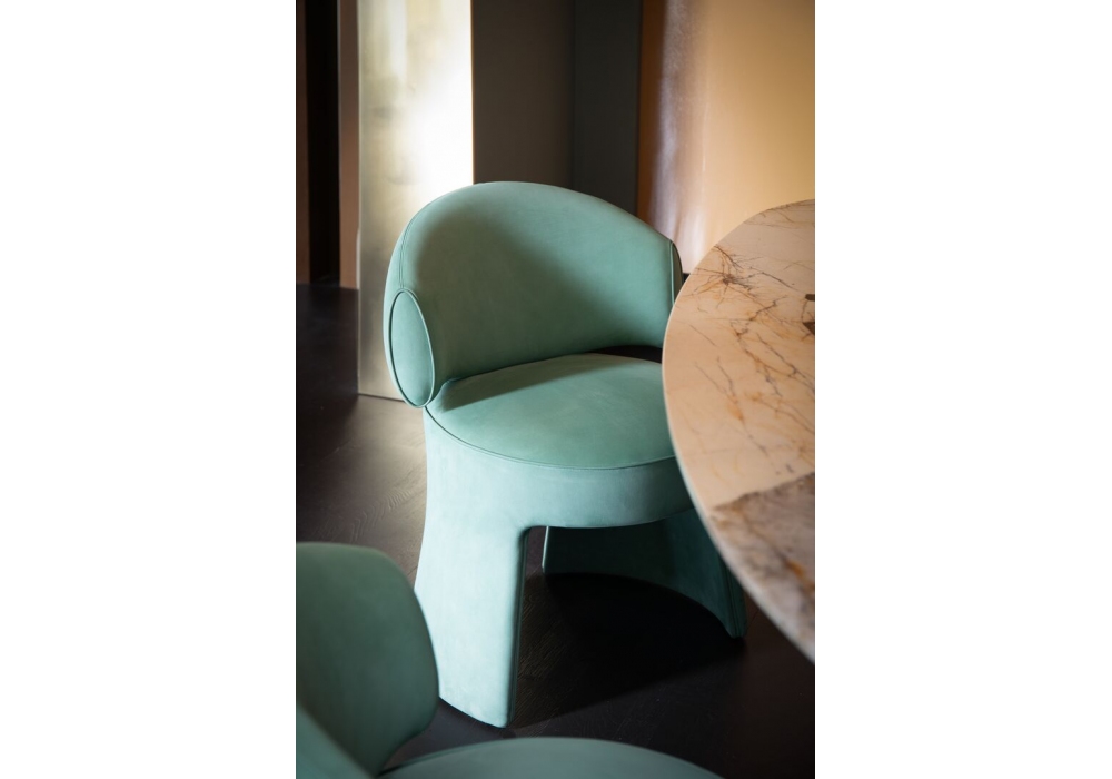 Inga designed by Roberto Lazzeroni for Baxter is a chair with structure, seat, legs and backrest in birch and poplar plywood. Padding in differentiated density polyurethane foam. Upholstery in soft leathers only.