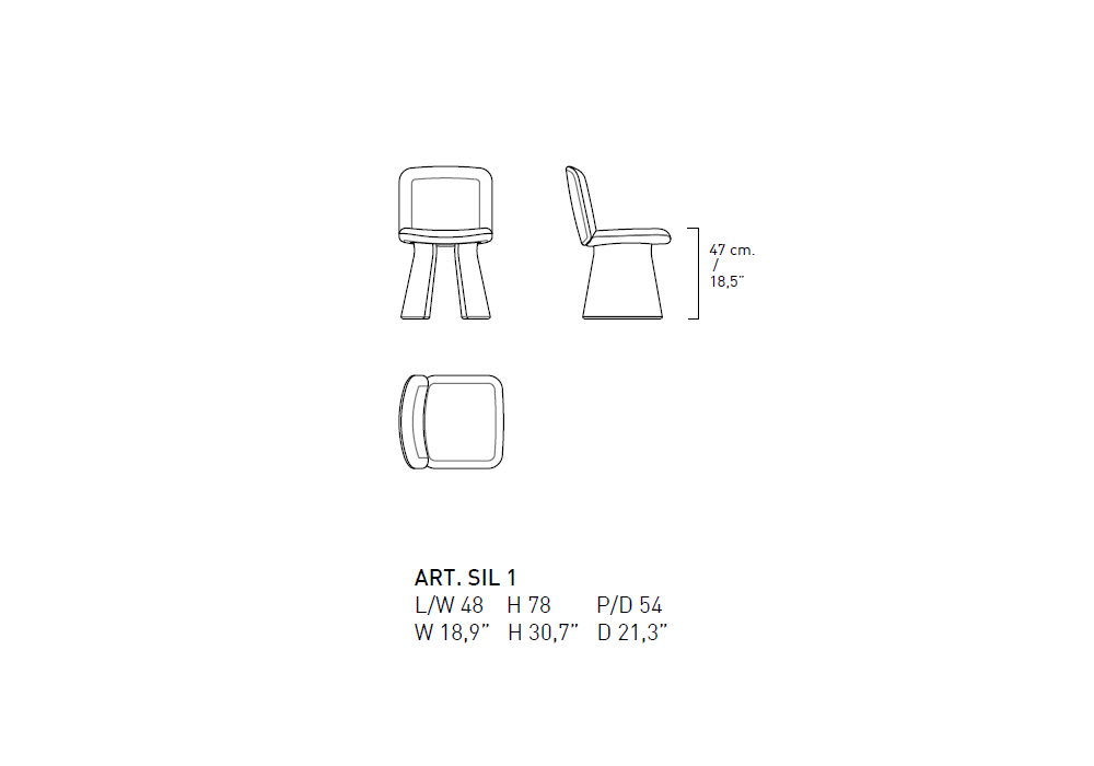 Ila designed by Augelettiruzza for Alivar is a chair with a steel frame covered in flexible cold polyurethane foam. Upholstery in leather or fabric in various finishes.