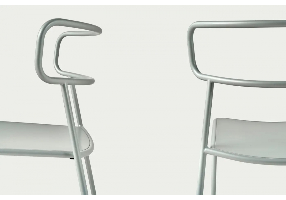 Paloma designed by Radice Orlandini for Baleri Italia is a stackable chair with AISI 304 stainless steel sheet seat and AISI 304 stainless steel tubular frame, painted with epoxy powders in the specified colours.