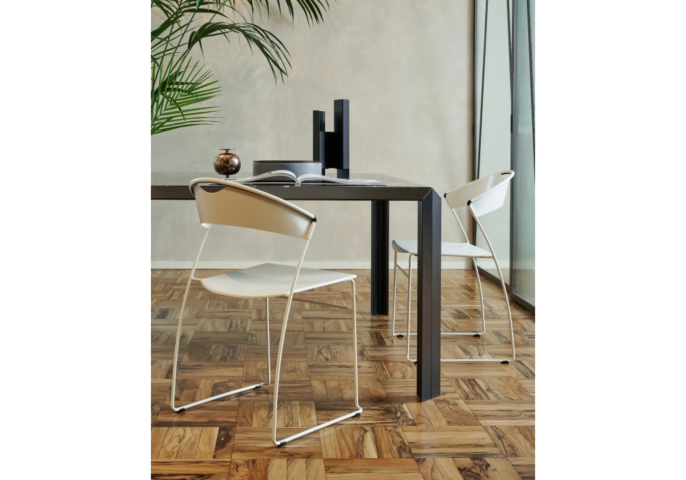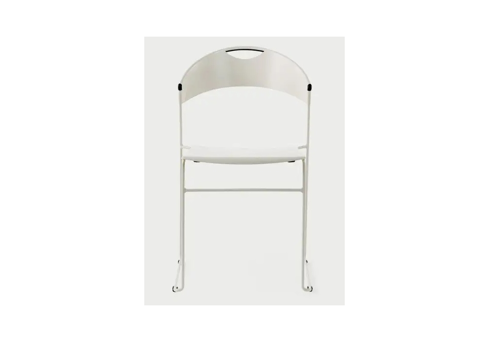 Juliette designed by Hannes Wettstein for Baleri Italia is a stackable chair with structure made of steel rod painted with epoxy powders in the specified colours. Seat and backrest of stamped sheet steel painted in the color of the structure. Black polyethylene interlocking feet.