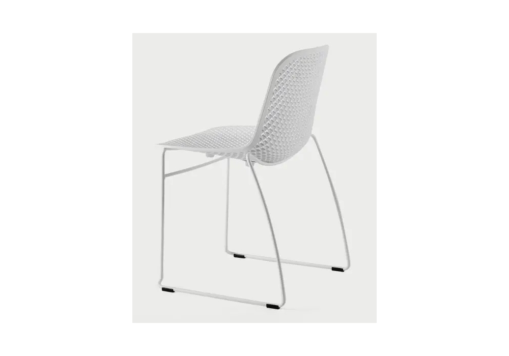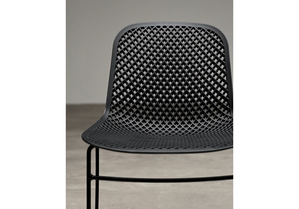I.S.I. Chair designed by Luigi Baroli for Baleri Italia is a stackable chair with openwork shell made of injection-moulded nylon, available in the specified colours, characterized by an embossed texture. Tubular steel legs painted in the same color as the shell.