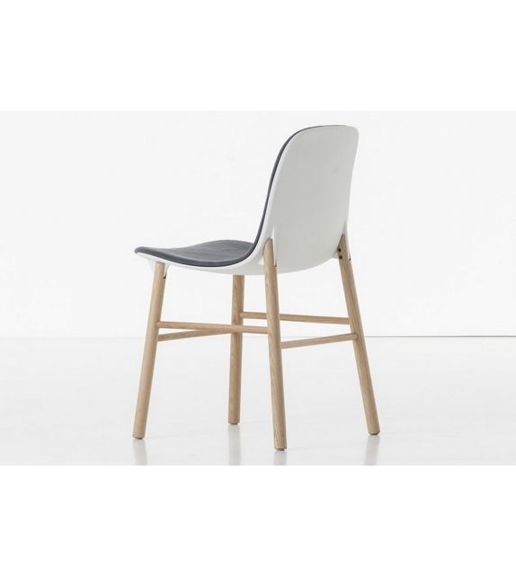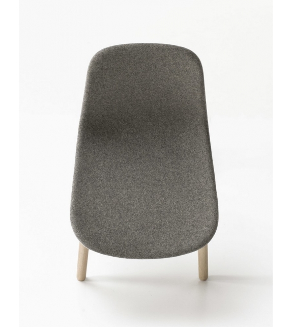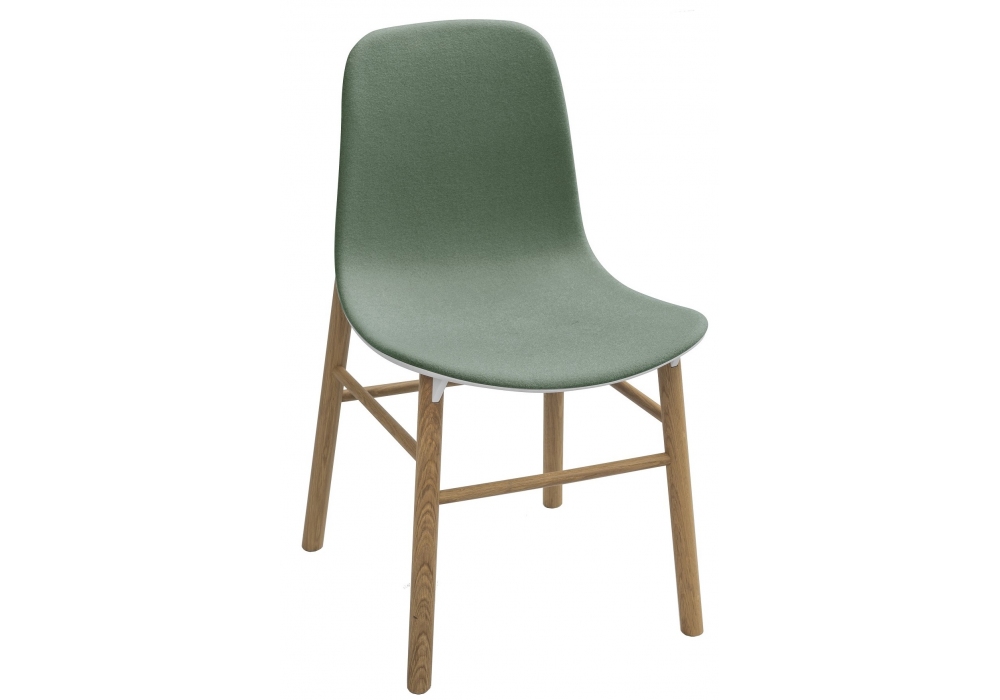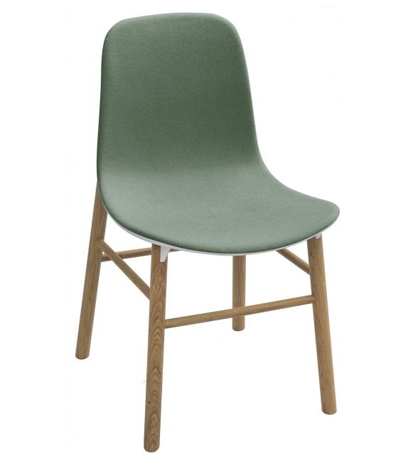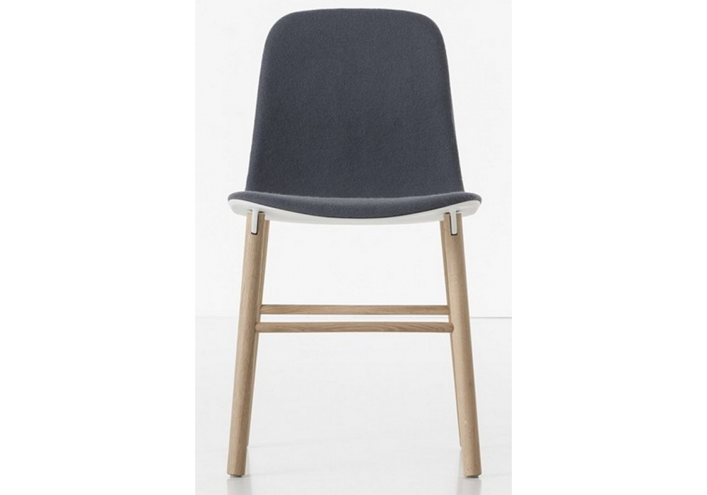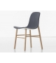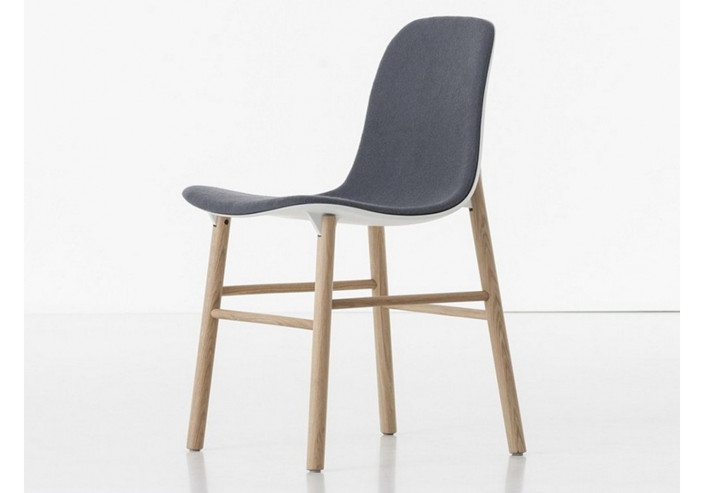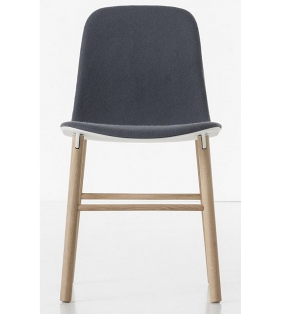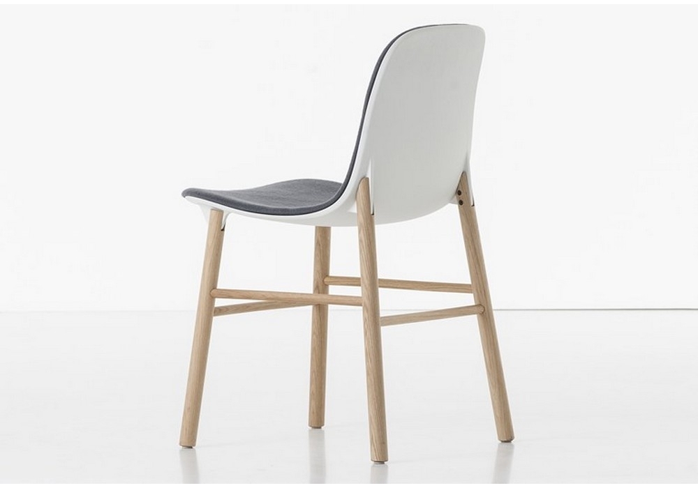 Sharky designed by Neuland. Paster & Geldmacher for Kristalia is a chair with shell in polyurethane available in several colors, front upholstery in fabric or leather and base in solid wood proposed in different finishes.