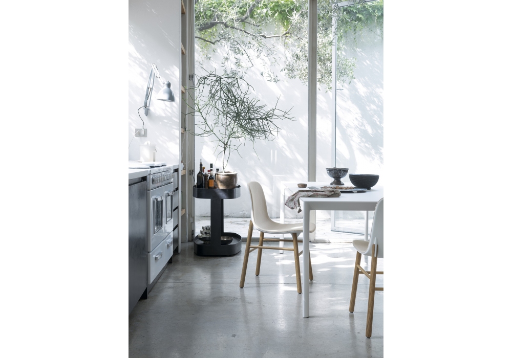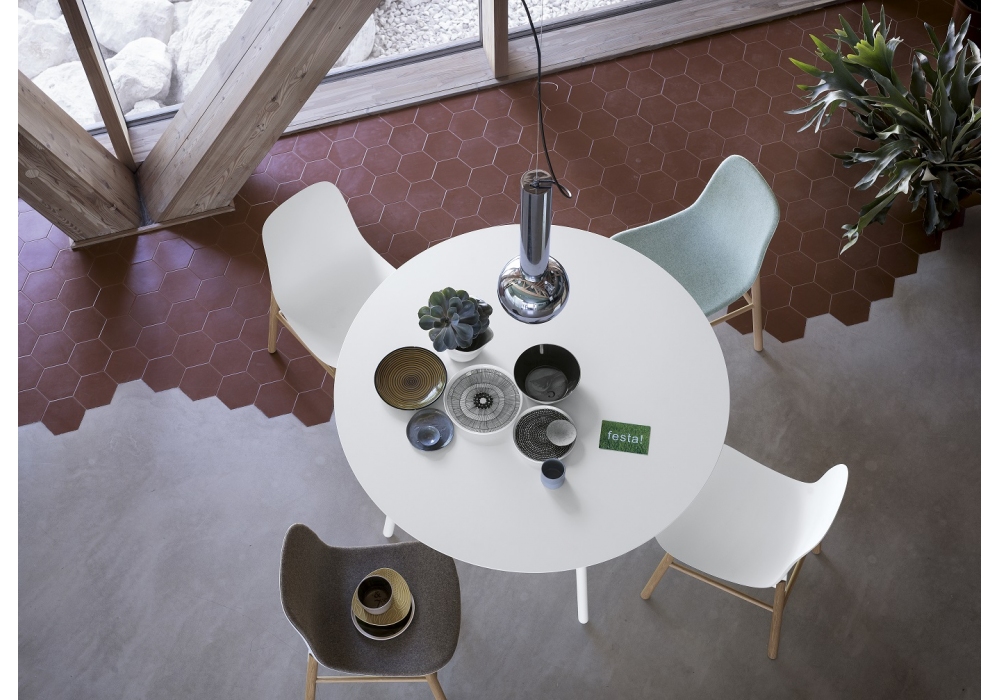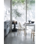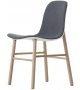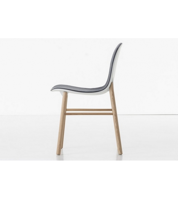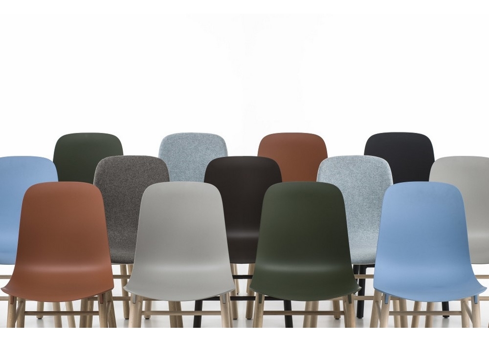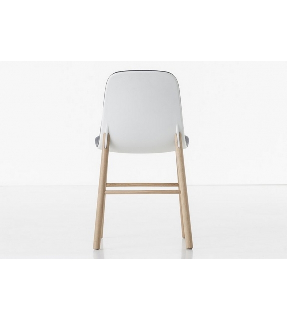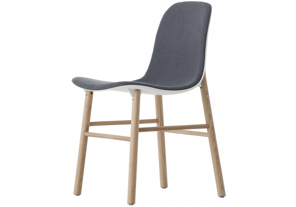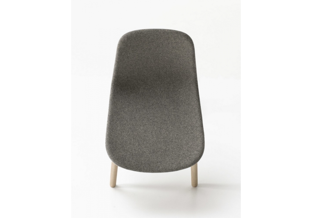 Sharky designed by Neuland. Paster & Geldmacher for Kristalia is a chair with shell in polyurethane available in several colors, front upholstery in fabric or leather and base in solid wood proposed in different finishes.