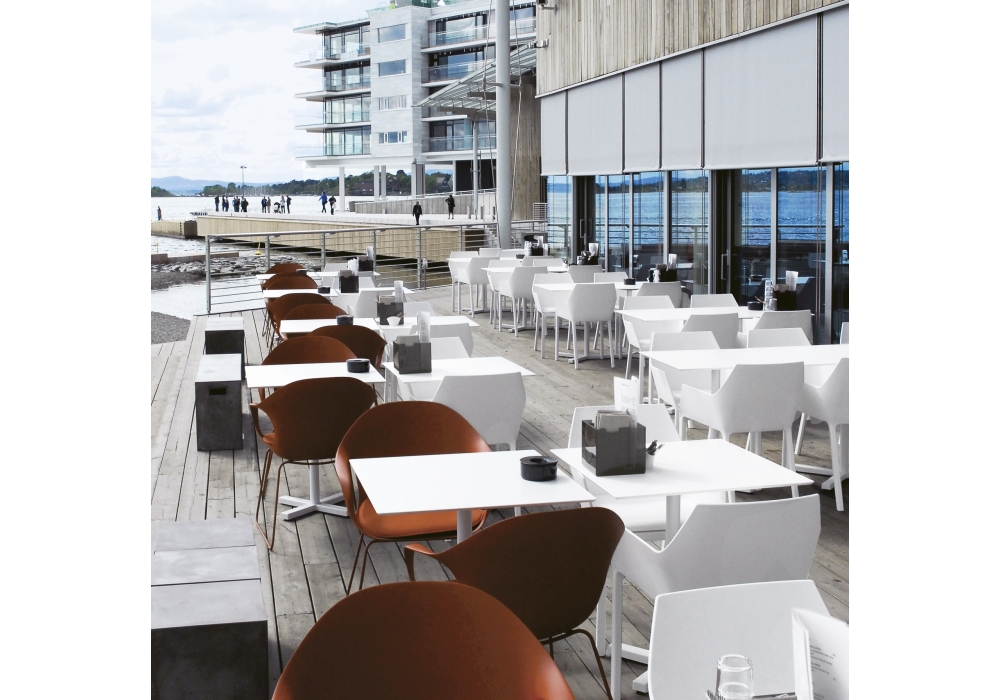 Mem designed by Christophe Pillet for Kristalia is a chair with armrest. The characteristic feature of this chair is bi-injection, a process which renders it stiff, keeping this seat in its absolutely beautiful form. The skin is pleasingly uniform and covers every face and vertex of the piece.