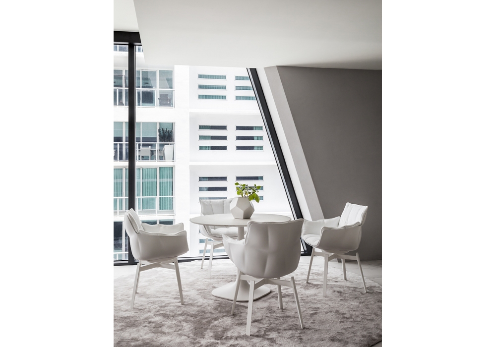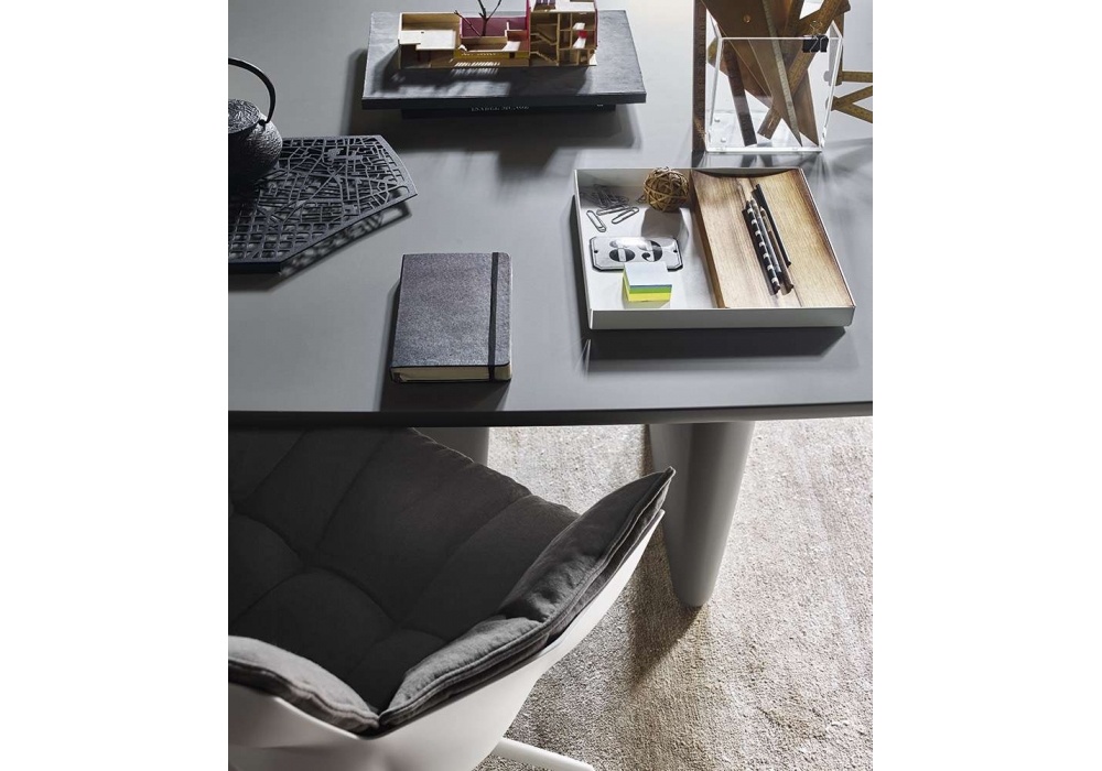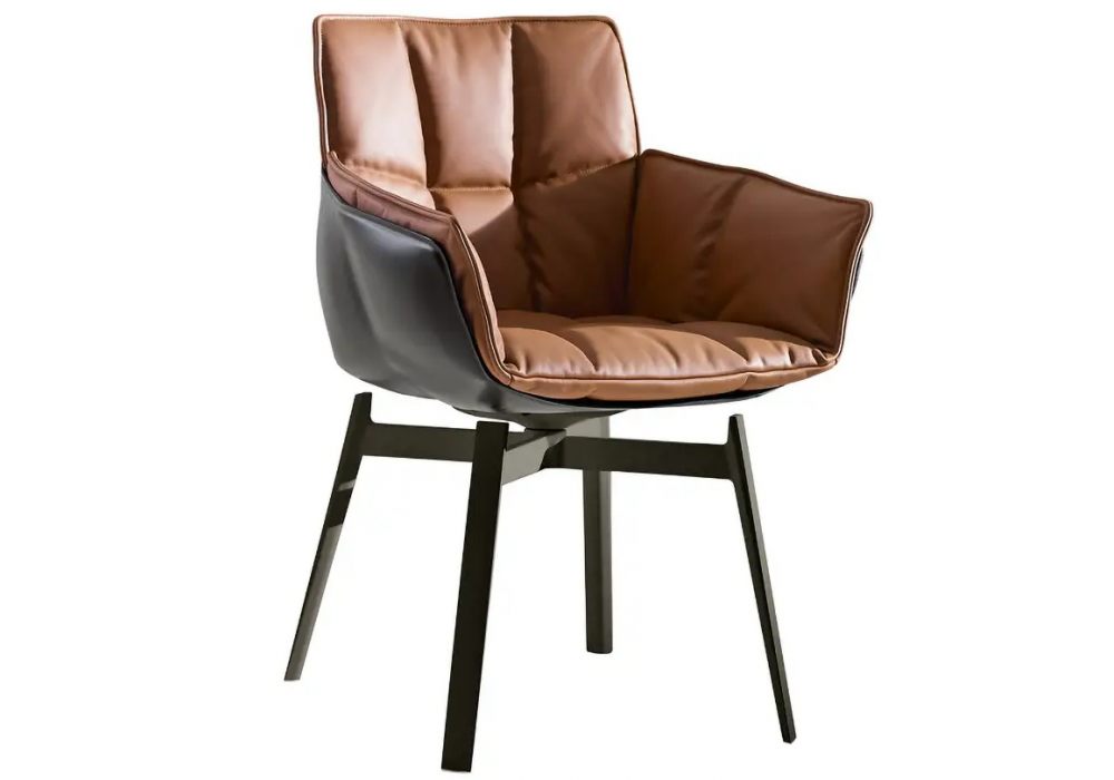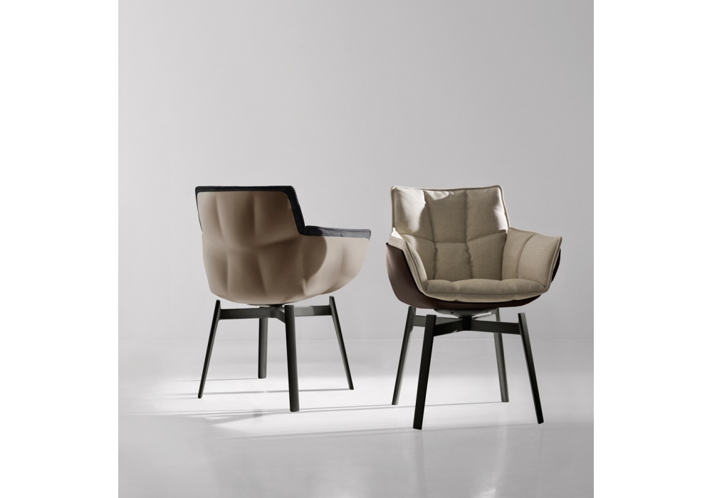 Husk designed by Patricia Urquiola for B&B Italia is a chair with a painted aluminum structure, a shell in Baydur® in different finishes or covered in leather. Fabric or leather upholstery. Available in a fixed or swivel version.