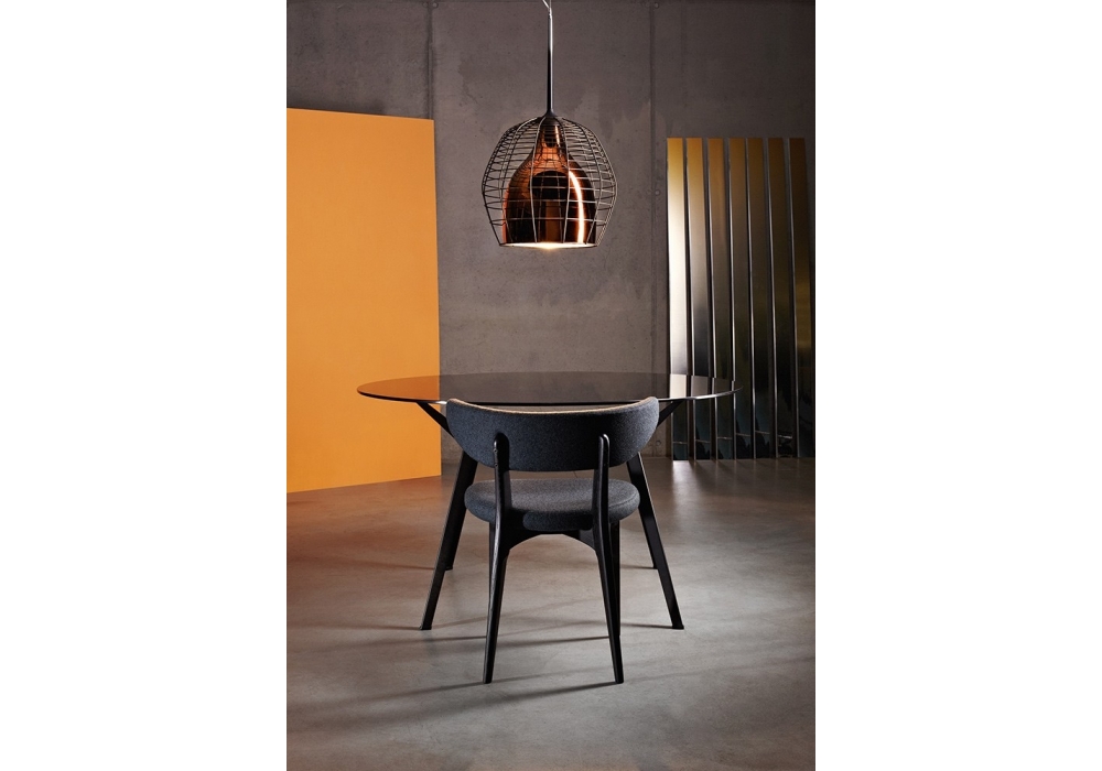 Varnished ash. Seat and back in birch covered by flame-retardant stress-resistant polyurethane foam with differentiated densities.
