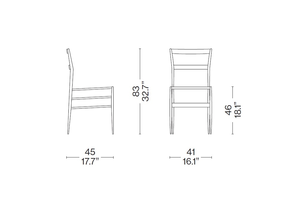 699 Superleggera designed by Gio Ponti for Cassina is a chair made with a solid ash frame and padded seat with leather upholstery.