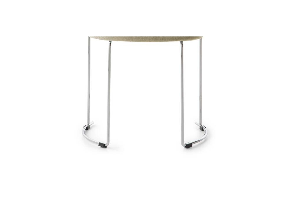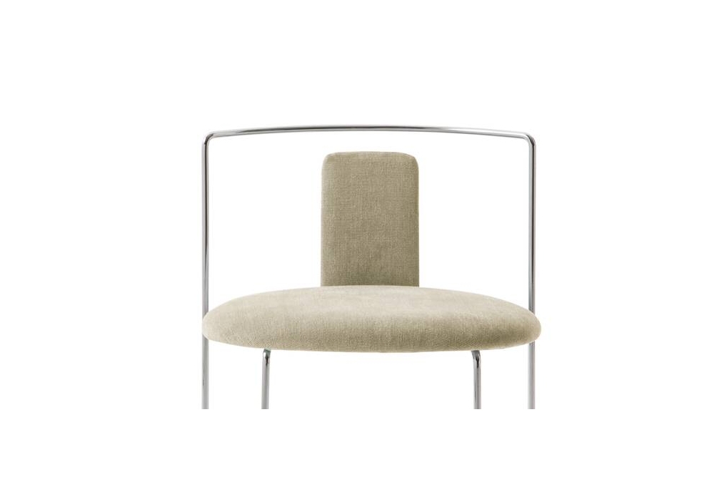 Gaja designed by Kazuhide Takahama for Cassina is a chair made with a chromed or painted bent metal rod frame, flexible polyurethane foam padding and fabric or leather upholstery.