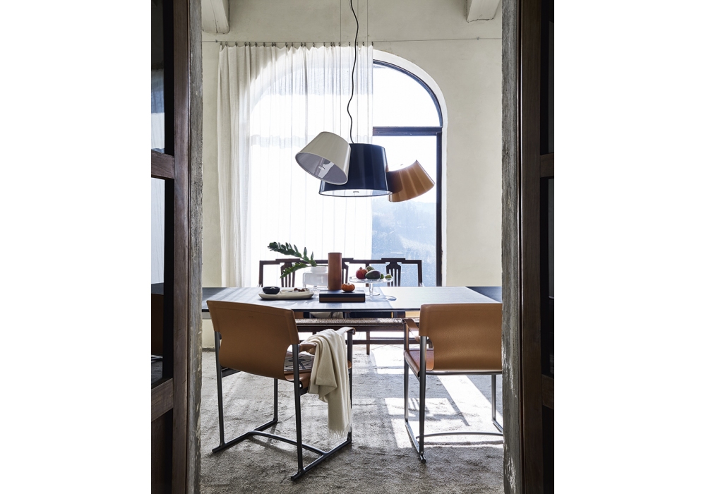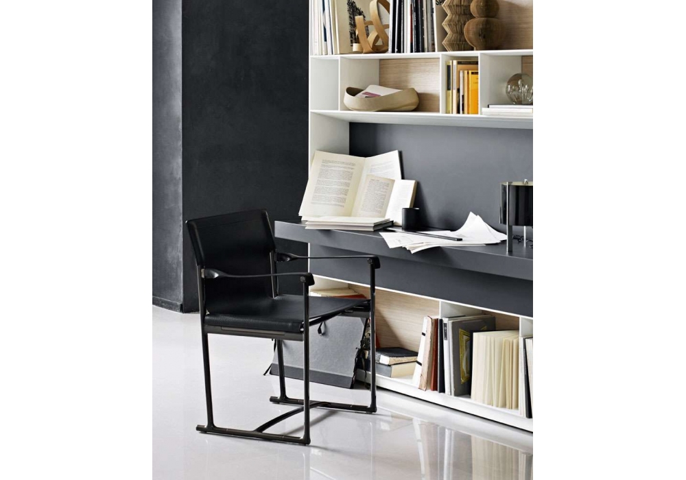 Mirto Indoor designed by Antonio Citterio for B&B Italia is a chair with a chromed or painted die-cast aluminum frame and leather upholstery in different finishes. Available in the version with or without armrests.