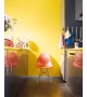 Vitra Eames Plastic side chair DSR: Charles & Ray Eames, 1950. Eames Plastic Side Chair is a contemporary version of the legendary Fiberglass Chair. It was produced in collaboration with Zenith Plastics for the Museum of Modern Art in New York's Low-Cost Furniture Design Competition and was the first industrially manufactured plastic chair. To complement the product line, Vitra is re-launching the fully-upholstered Plastic Armchair. The organically shaped upholstered shells are particularly comfortable and radiate a homely atmosphere. The Hopsak cover in 13 colours can be combined at will with the eight colours of the seat shell. Together with the base frames, this creates any number of individual possible combinations. The upholstery is fixed to the shell with black or white piping.