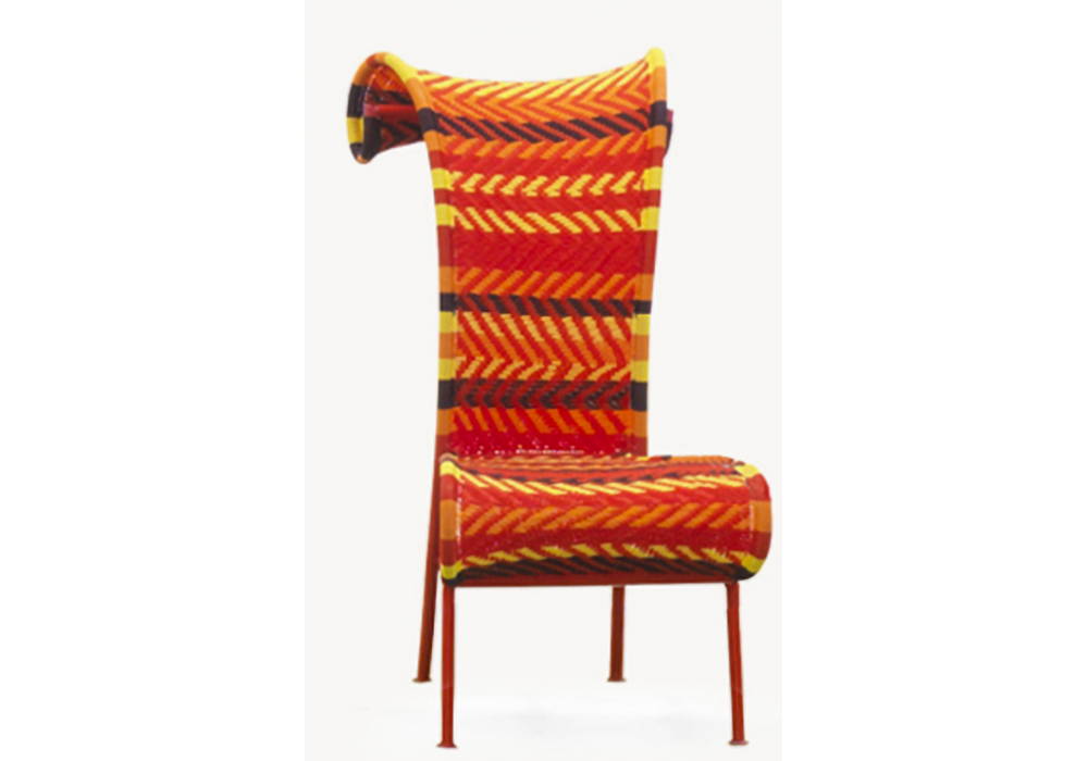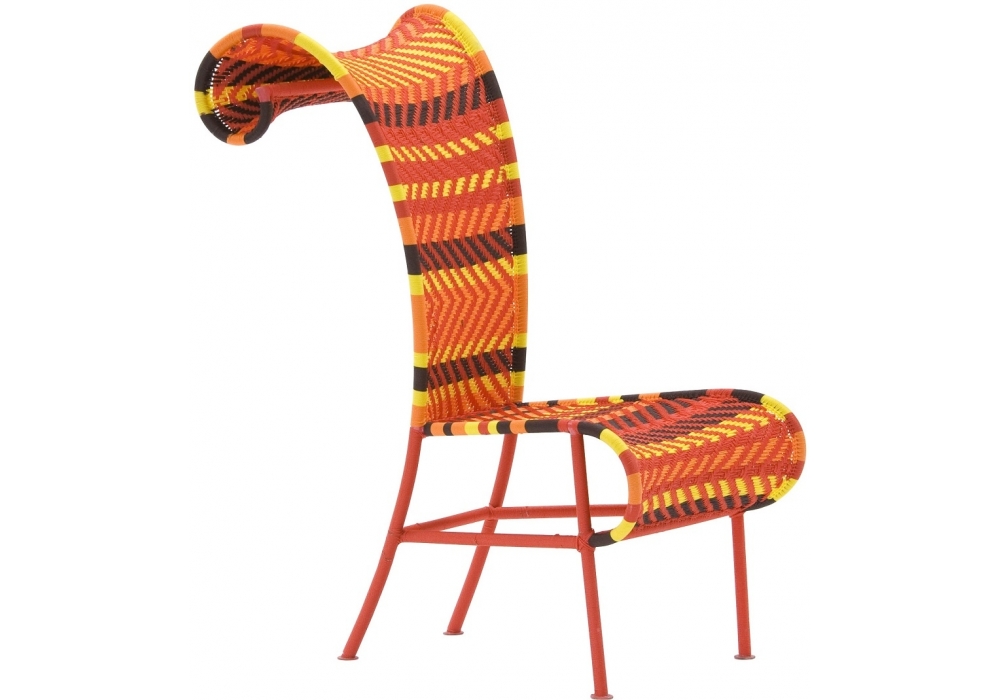 Sunny designed by Tord Boontje for Moroso is a chair with a painted steel structure and colored weaves obtained from the manual processing of different polyethylene threads. Rubber insoles. The items in the collection are handcrafted: each product is a unique piece and differences in colors and weaves are not to be considered defects.