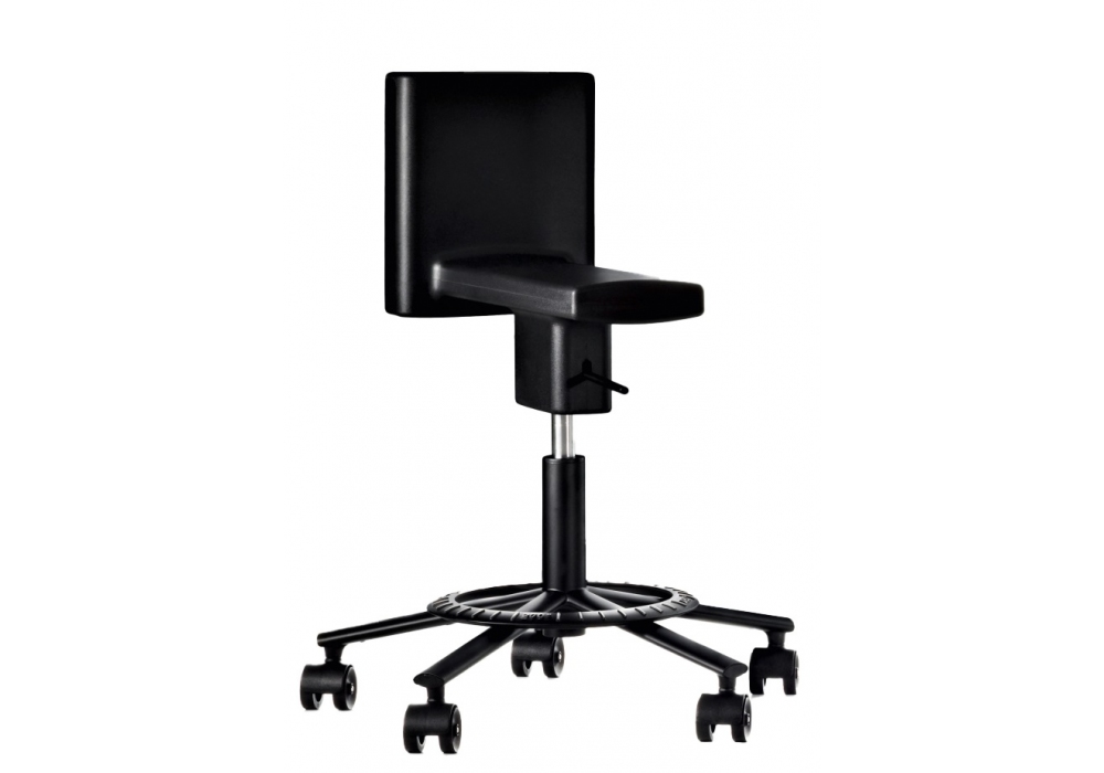 360° Chair designed by Konstantin Grcic for Magis is a swivel chair on wheels. Height adjustable with gas piston, steel structure painted with epoxy resin. Footrest in die-cast aluminum. Seat in integral self-supporting polyurethane.