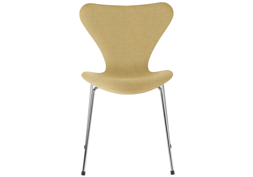 Series 7 designed by Arne Jacobsen for Fritz Hansen is a chair made with shell entirely upholstered in fabric or leather and legs in chromed or powder-coated tubular steel. Available in different finishes.