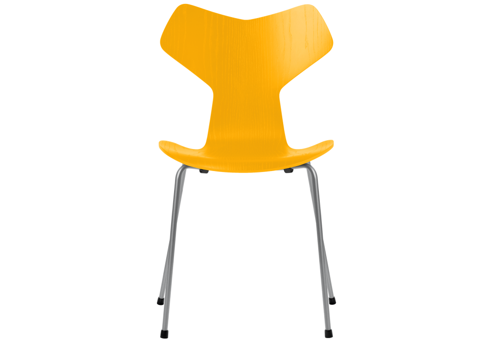 Grand Prix designed by Arne Jacobsen for Fritz Hansen is a stackable chair made with shell in oak, walnut or coloured or lacquered veener ash and legs in chromed or powder coated tubular steel. Available in different finishes.