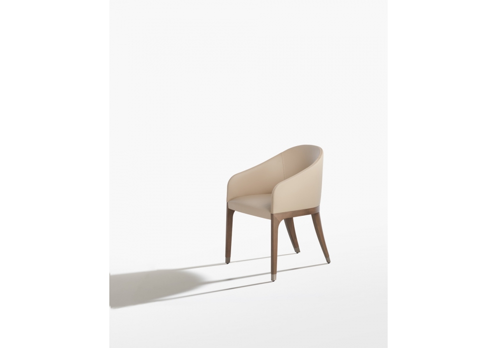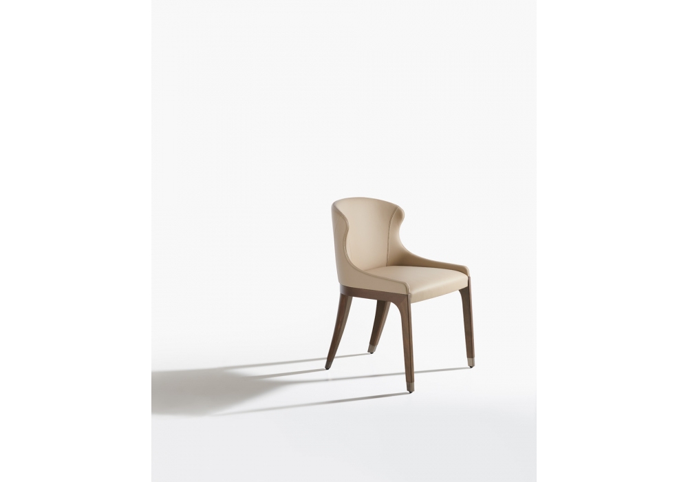 Miura designed by Enrico Franzolini and Cristian Malisan for Potocco is a padded chair in fire retardant polyurethane foam upholstered in fabric, leather or eco-leather. Frame and legs are made of solid beech with metal feet in three finishes: chrome, burnished brass or black chrome.