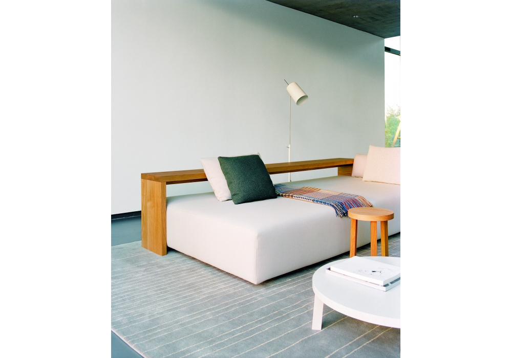 SF02 Kashan designed by Philipp Mainzer for E15 is a chaise longue with structure made of solid wood. Its structural strength and luxurious simplicity make Kashan a notable and versatile sofa. Upholstery is available in leather or fabric.
