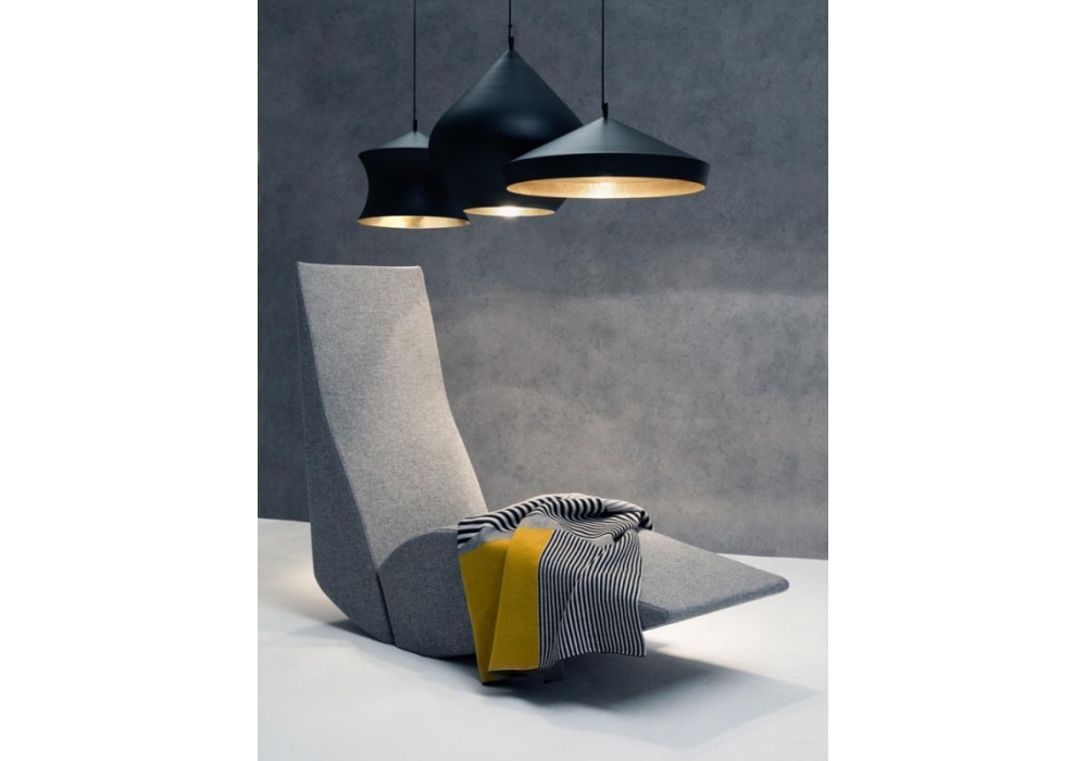 Bird Chaise designed by Tom Dixon is a rocking chaise longue, upholstery available in fabric or leather.