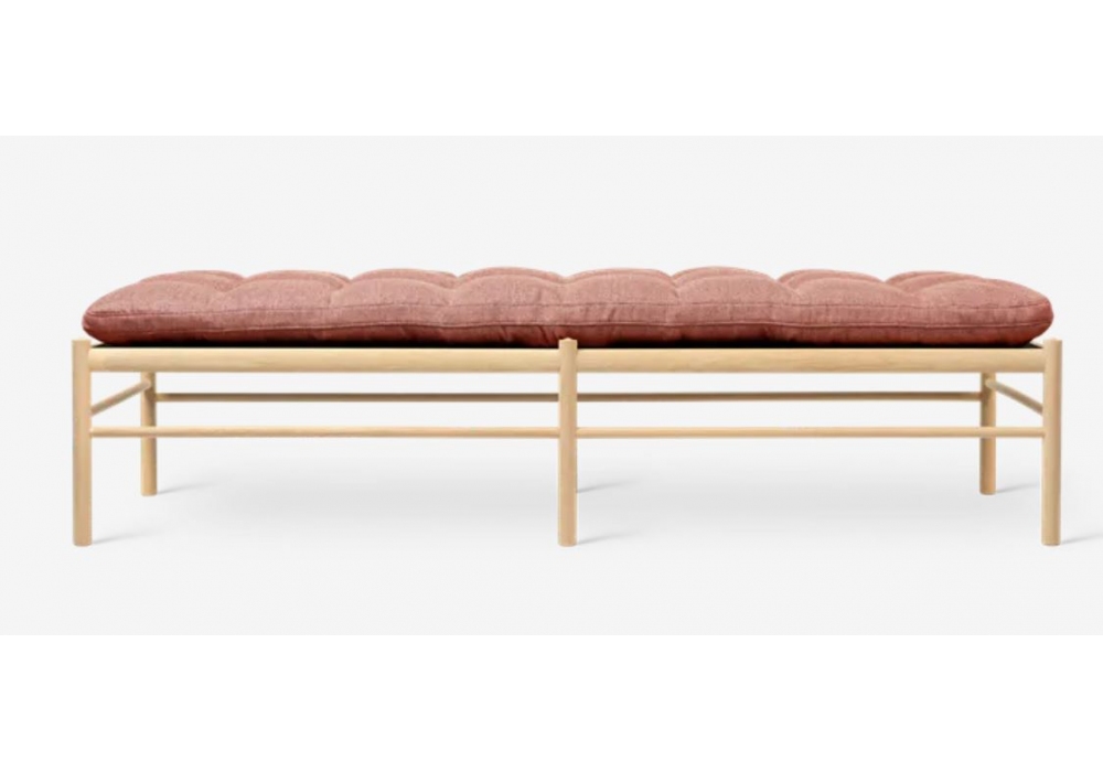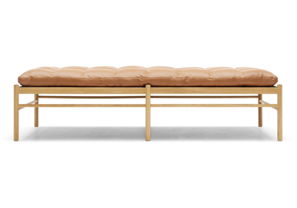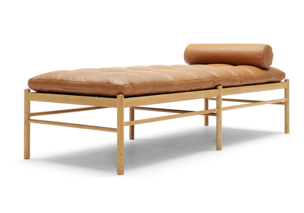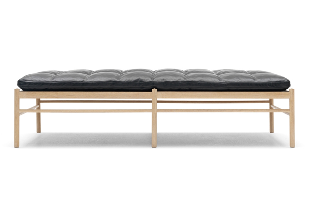 OW150 designed by Ole Wanscher for Carl Hansen & Søn is a daybed with a solid oak frame in various finishes. The mattress is upholstered in fabric or leather. Available with or without a headrest cushion.