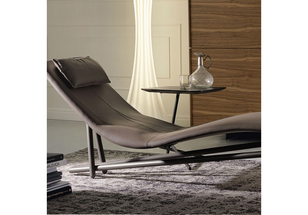 Donovan designed by Giuseppe Viganò for Cattelan Italia is a chaise longue with steel base and padded shell. Upholstery available in leather, eco-leather or fabric.