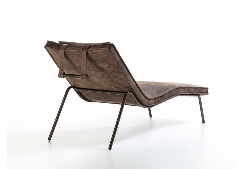Daybed designed by RedCreative for Enrico Pellizzoni is a chaise lounge with base in painted metal tubular steel. Seat upholstered in polyurethane foam, covering in different materials and colours. Removable headrest cushion with lacquered counterweight.