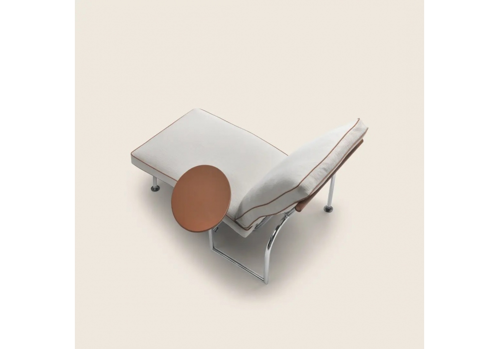Ginger designed by Antonio Citterio for Flexform is a sunbed with tubular metal structure, bar covered in leather. Upholstery in fabric or leather. Available in different finishes.
