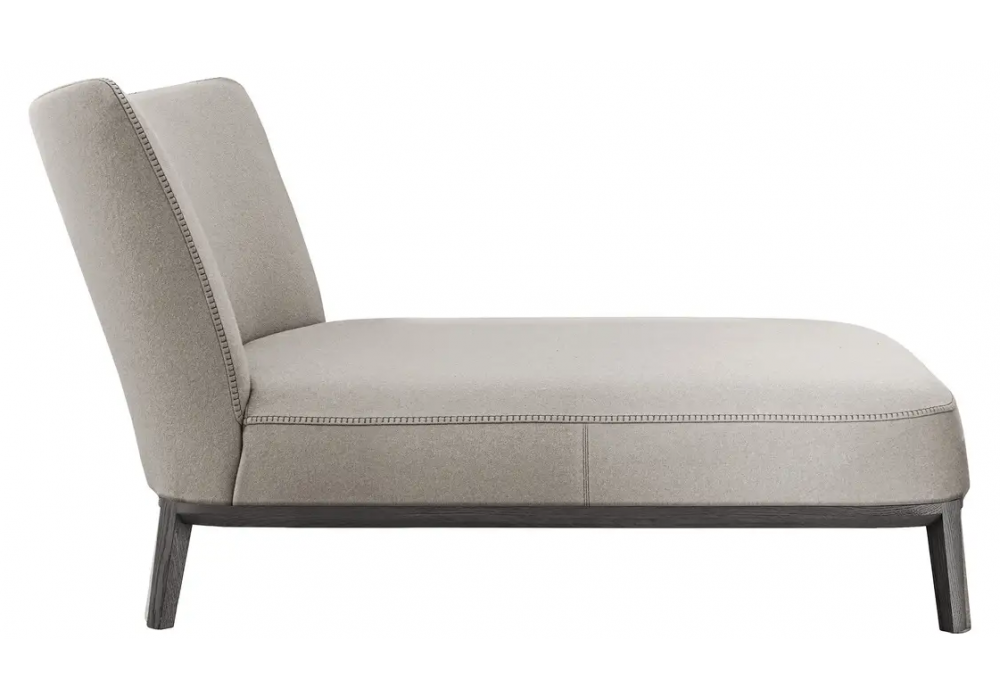 Febo designed by Antonio Citterio for Maxalto is a chaise longue with a base in orvere wood in various finishes or in natural wenge. Upholstery in fabric or leather. For the fabric version, the seams are only available with blanket stitch; for the leather version, the seams can be chosen between blanket stitch or raised stitch. The version with raised stitching can only be made tone-on-tone.