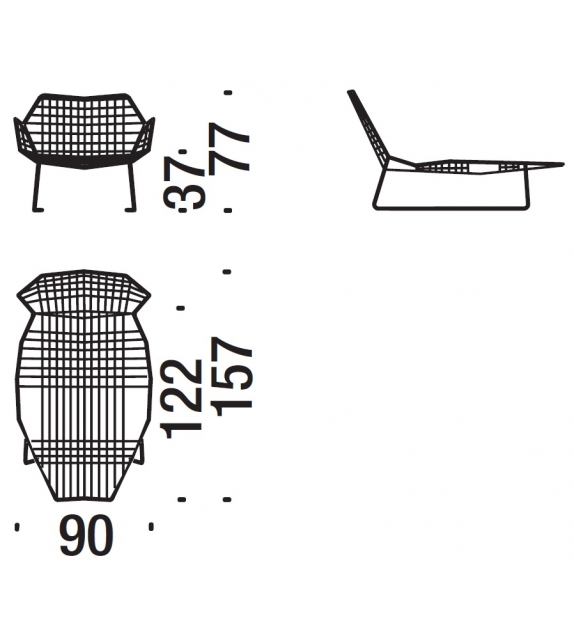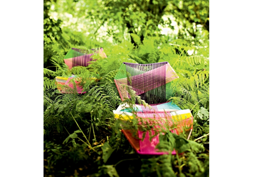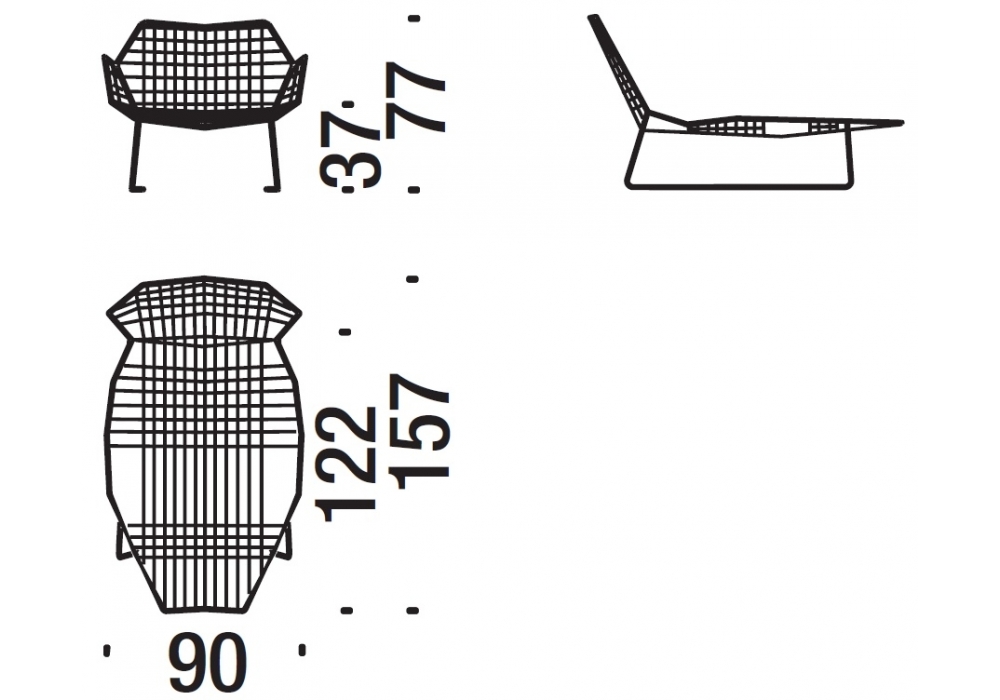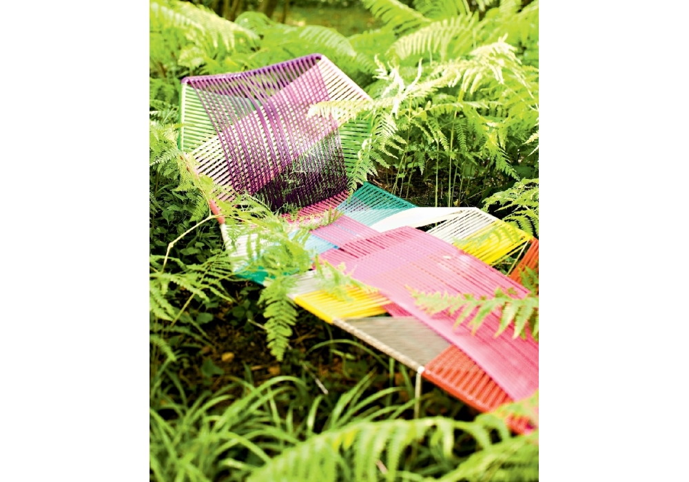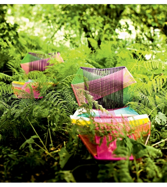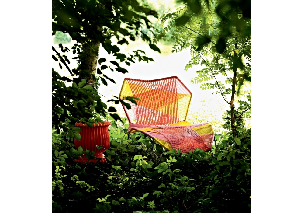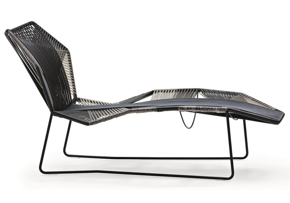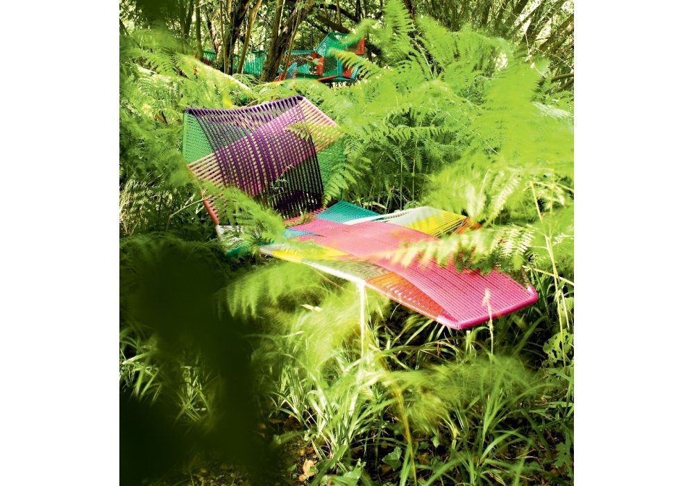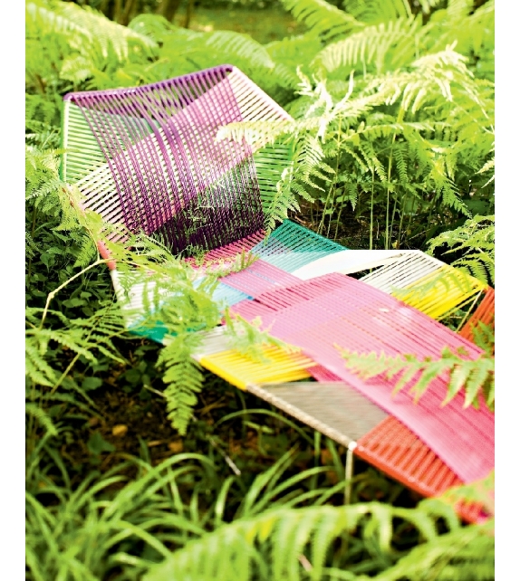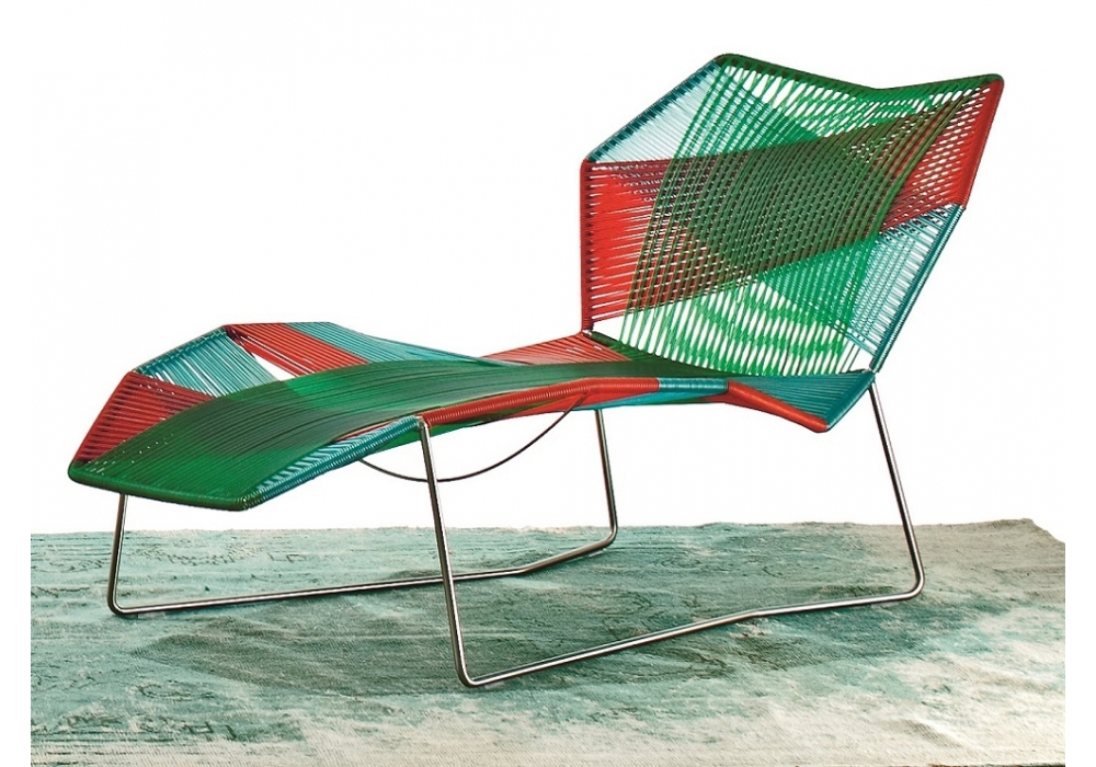 Tropicalia designed by Patricia Urquiola for Moroso is a chaise longue with structure in stainless steel or painted in different finishes and PVC insoles. Seat in technopolymer wire.