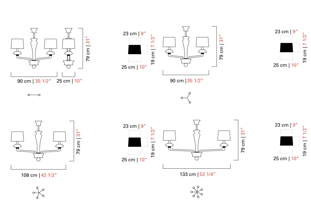 | Dimensions | 90 x 25 x H 79 cm; Ø 90 x H 79 cm; Ø 108 x H 79 cm; Ø 133 x H 79 cm. |