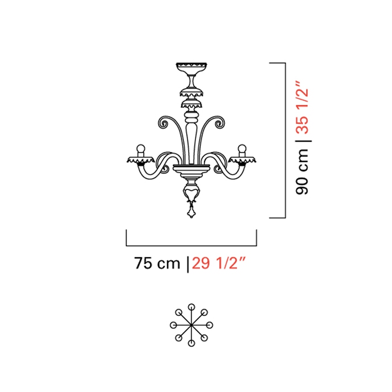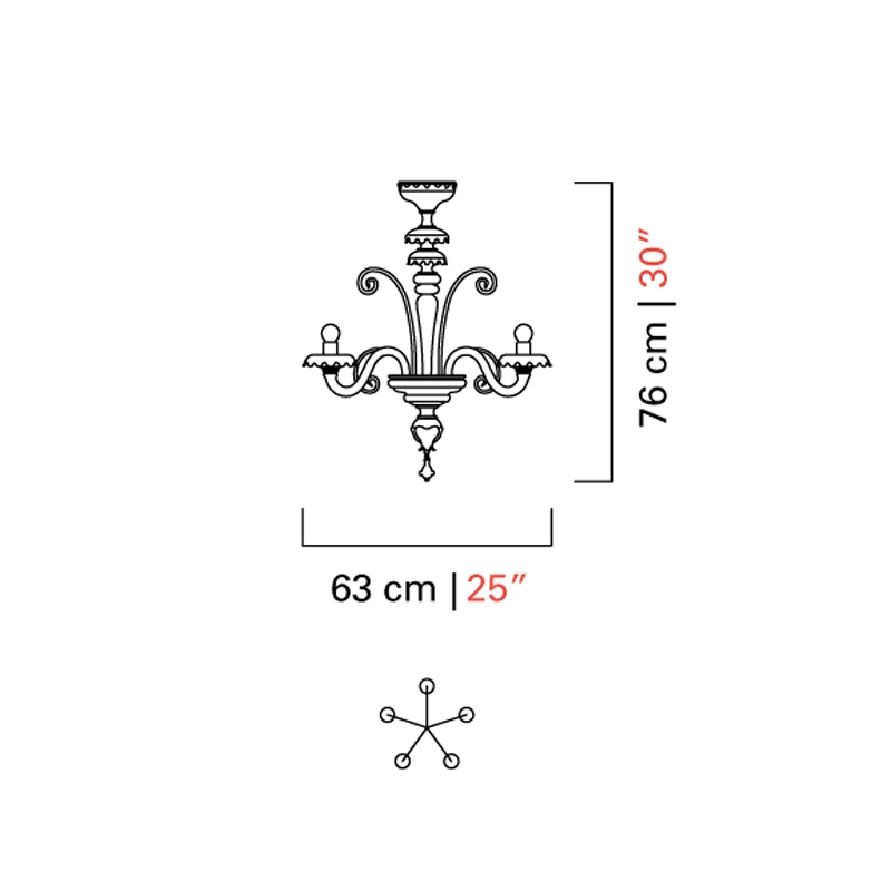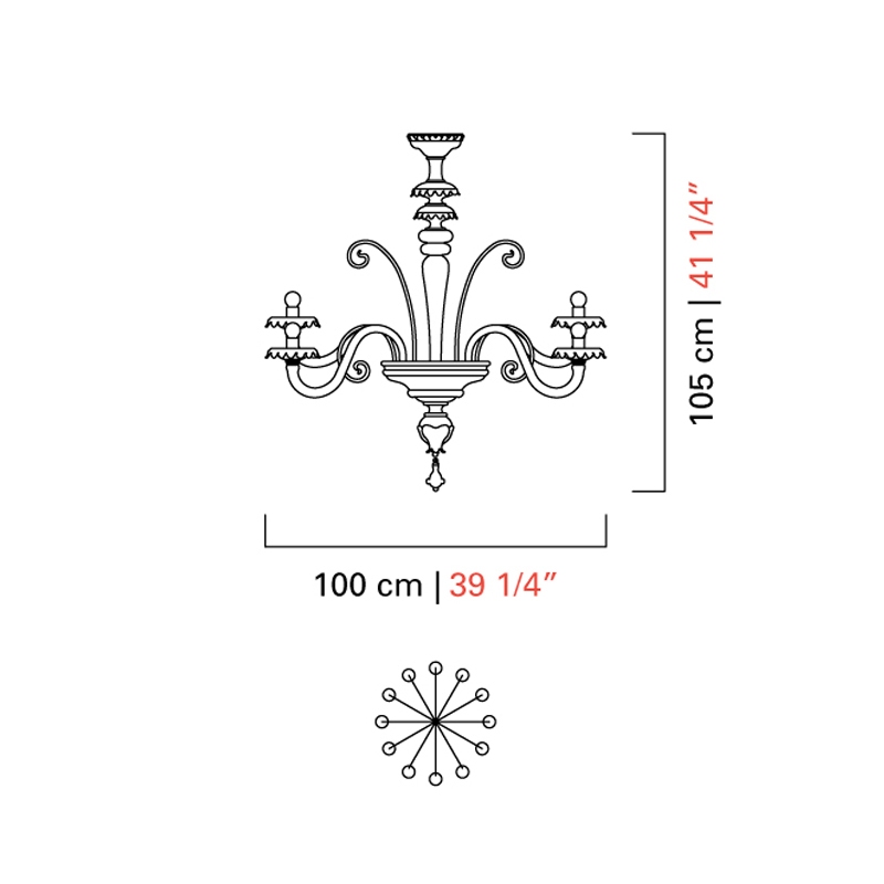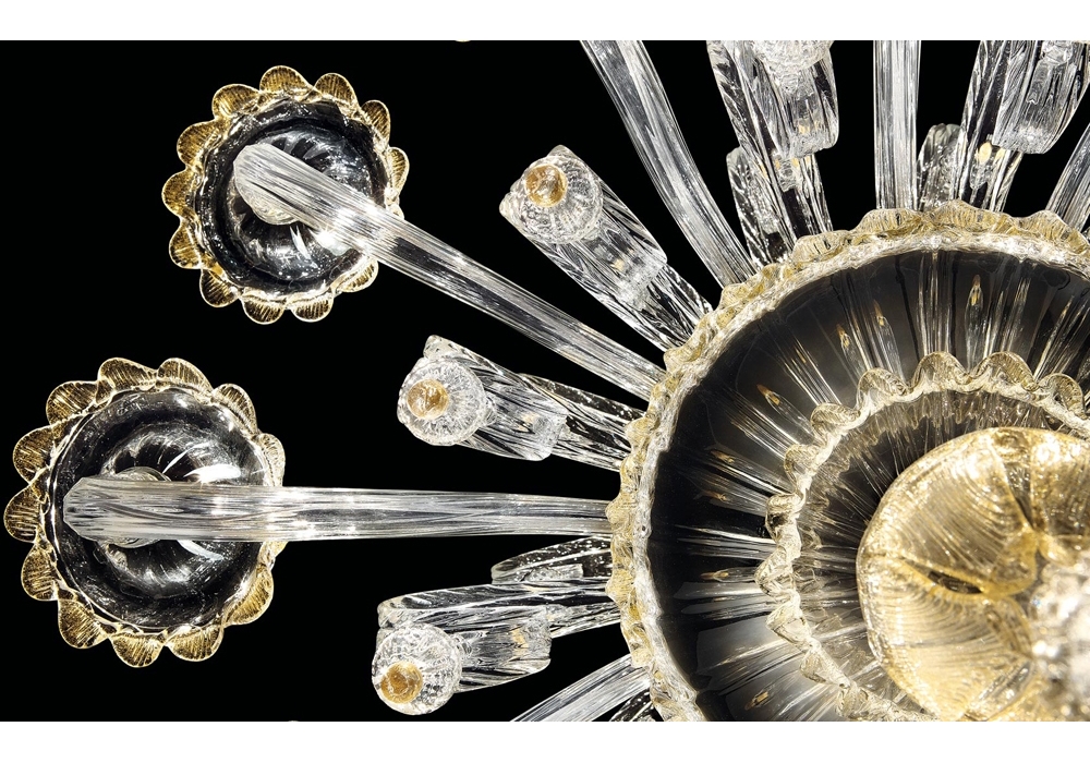 Rabat designed and produced by Barovier & Toso is a chandelier with supporting structure and details in metal covered in Venetian glass. The light sources adopted are of the dimmable LED or halogen type. Rabat is available in different models and finishes.