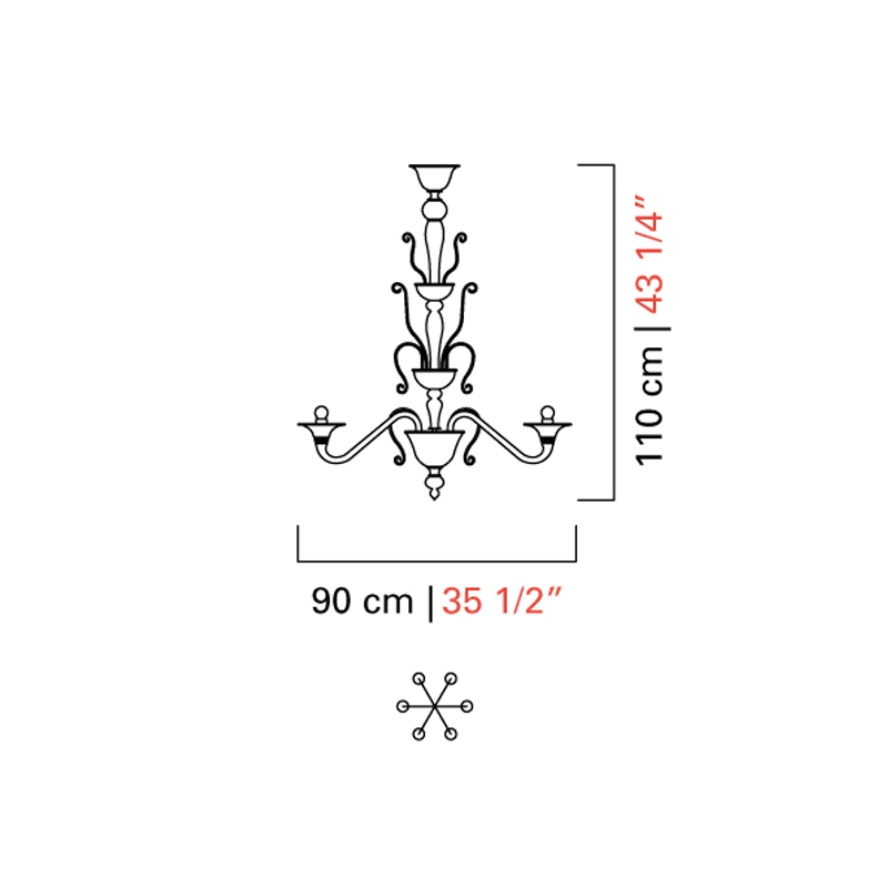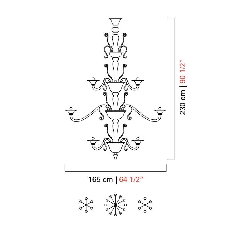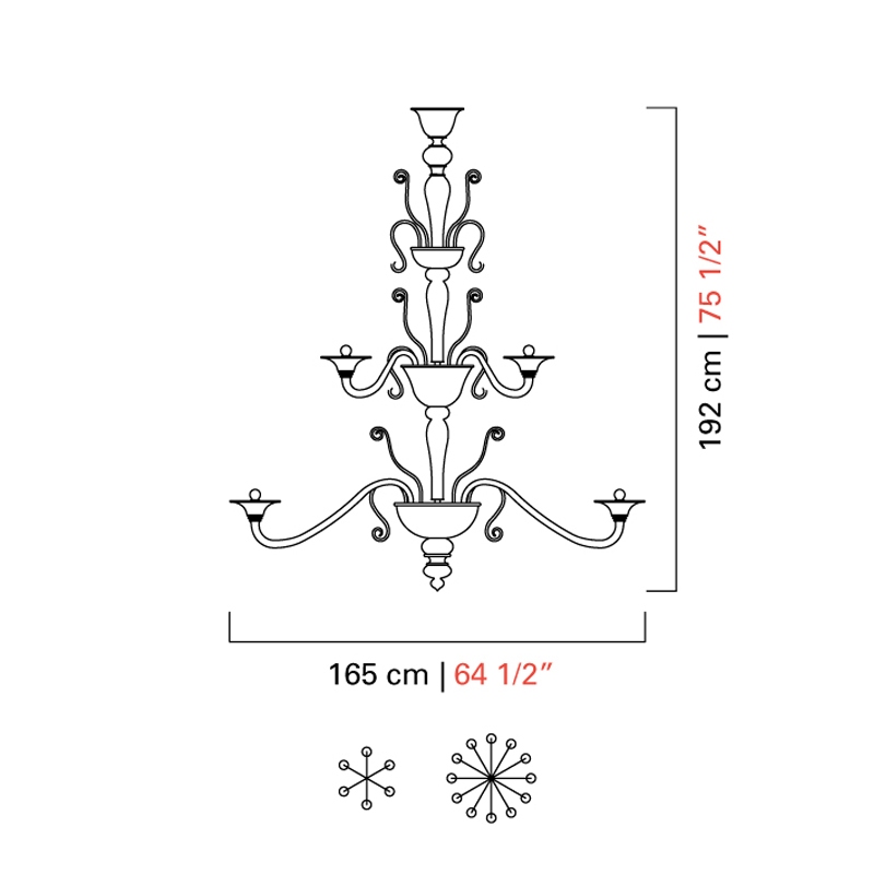 Redon designed and produced by Barovier & Toso is a chandelier with supporting structure and details in metal covered in Venetian glass. The light sources adopted are of the dimmable LED or halogen type. Redon is available in different models and finishes.