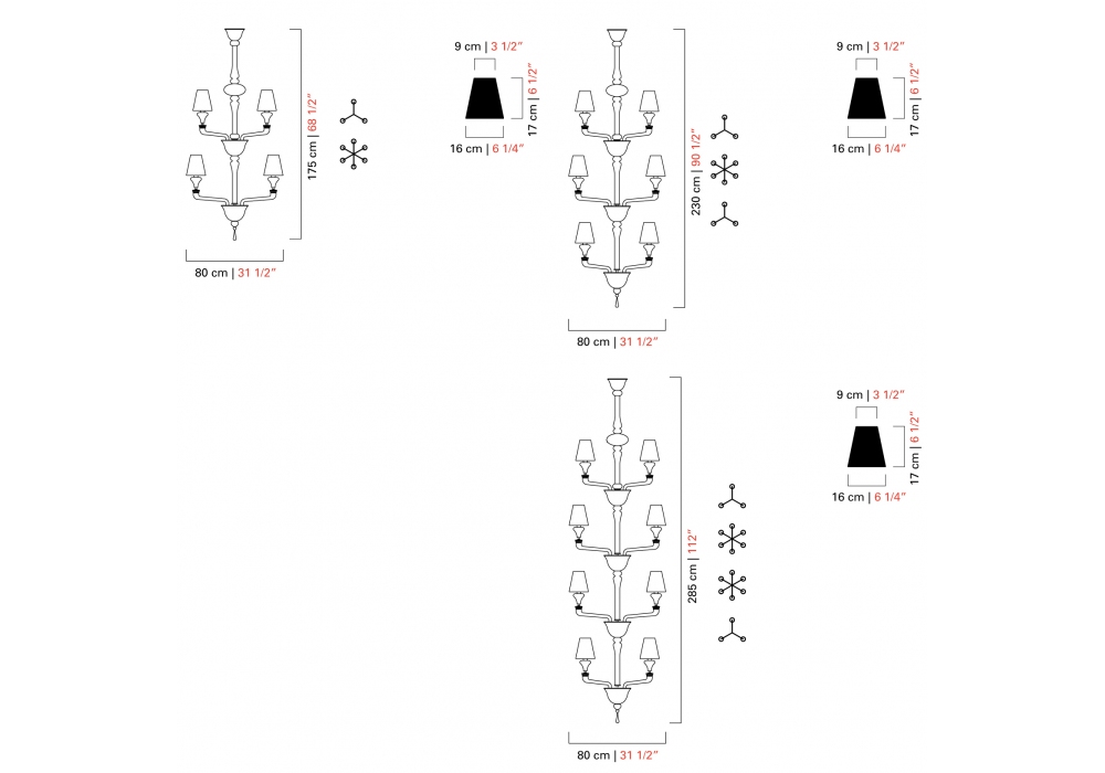 | Dimensions | Ø 80 x H 175 cm; Ø 80 x H 230 cm; Ø 80 x H 285 cm. |