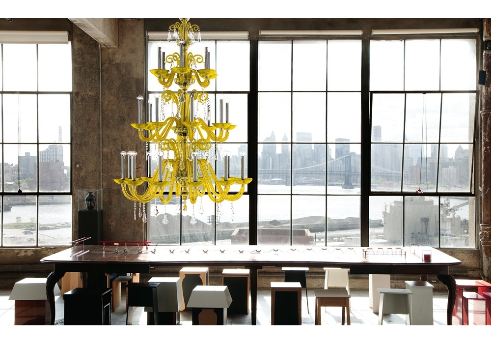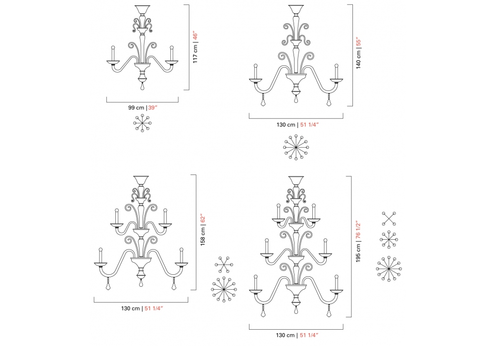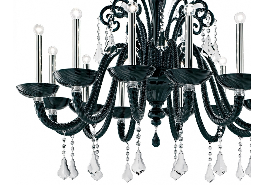 Izmir designed and produced by Barovier & Toso is a structured chandelier with 1 or more overlapping levels with metal frame and arms covered in Venetian glass and crystal. The light sources adopted are of the dimmable LED or halogen type. Izmir is available in different models and finishes.