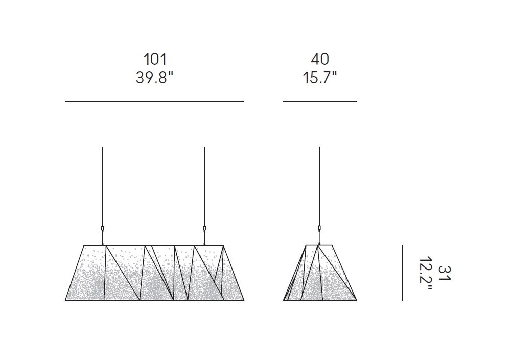 Plywood Chandelier designed by Steven Holl for Casamania & Horm is a chandelier composed of a lampshade made with a material created and patented by Horm composed of a sandwich of wood (Canaletto walnut) and 2.2 mm thick fabric which, thanks to superficial incisions made with laser cutting, it is folded like origami. Fixing to the ceiling using a steel plate and adjustable steel suspension wires.