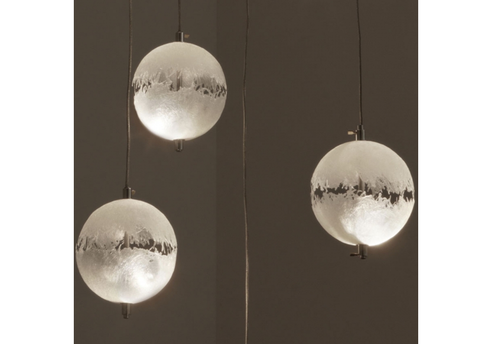 PostKrisi designed by Enzo Catellani for Catellani&Smith is a chandelier with natural fiberglass shades and satin steel base. Shades available in two dimensions (Ø 14 cm and Ø 20 cm) and square (30 x 30 cm, 60 x 60 cm), rectangular (30 x 90 cm) or round base (Ø 40 cm, Ø 78 cm).