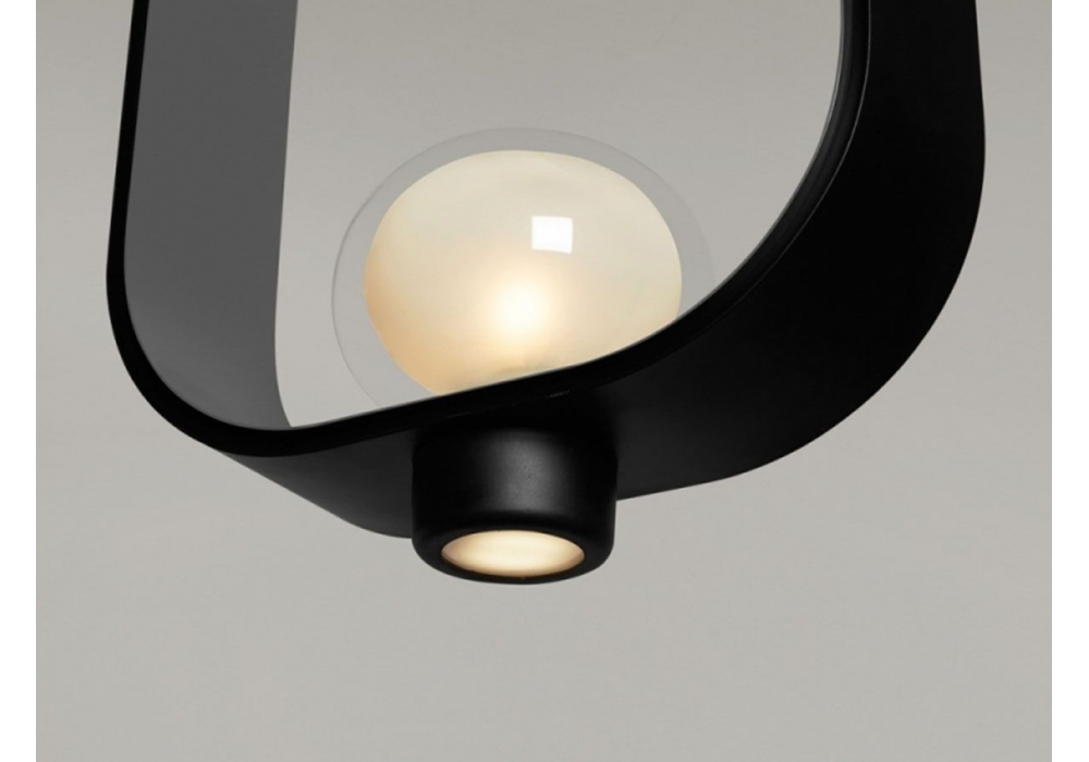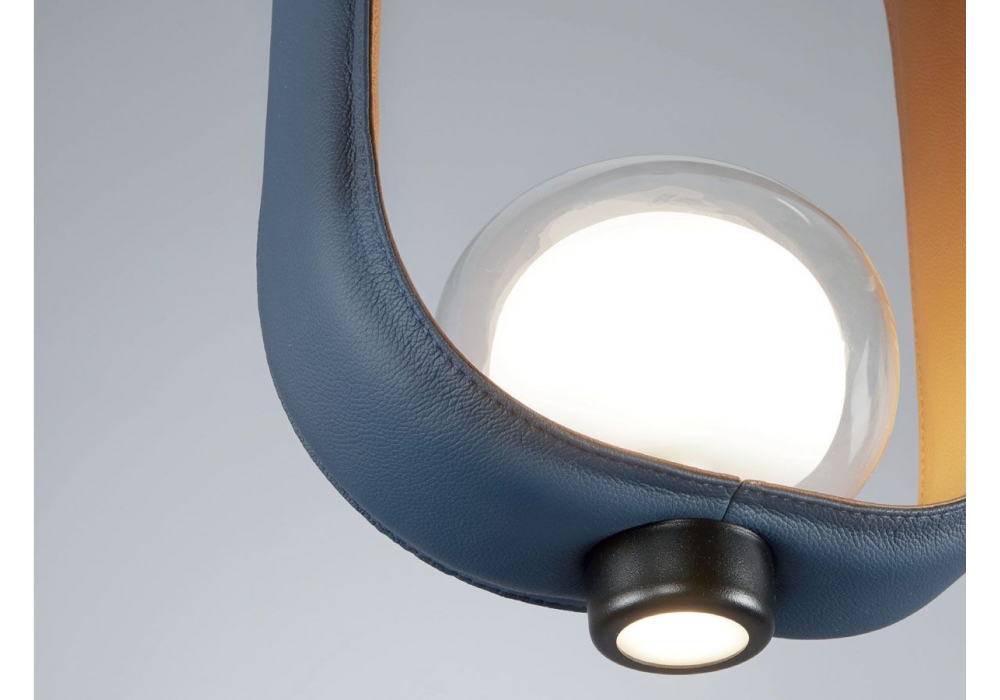 555 Filipa designed by Corrado Dotti for Tooy is a chandelier with metal bi-dimensional structure, double-side glass diffuser and integrated LED light source. A new version in a twocoloured leather has enriched the collection. Bulb not included.