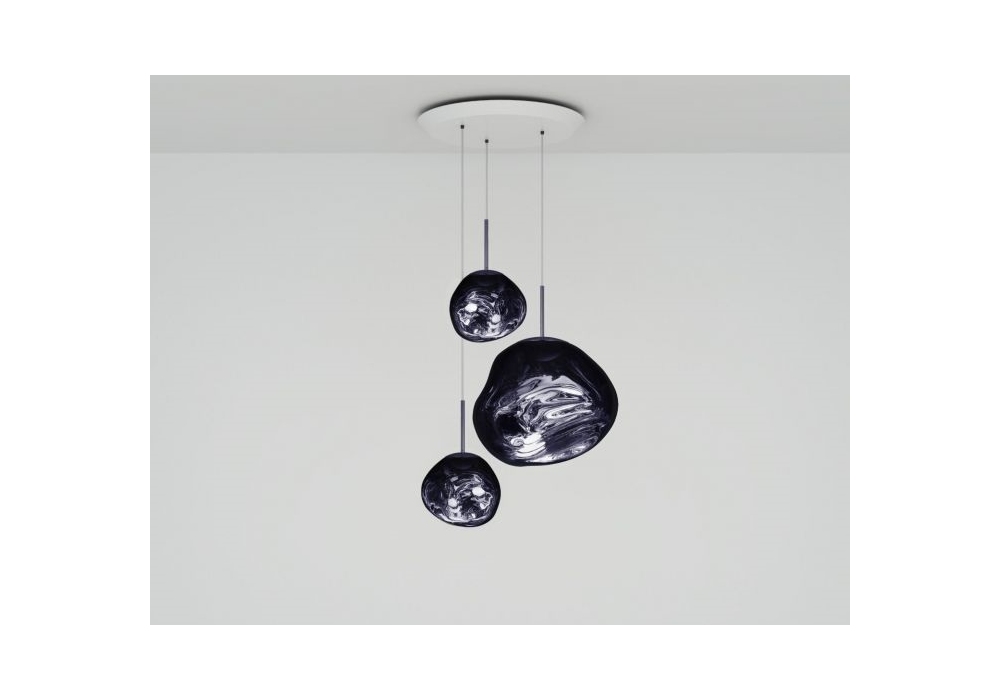 Melt Trio Round designed by Tom Dixon is a suspension system composed of three polycarbonate lamps. System available in different finishes.