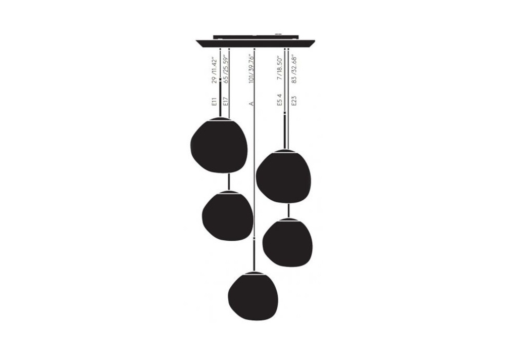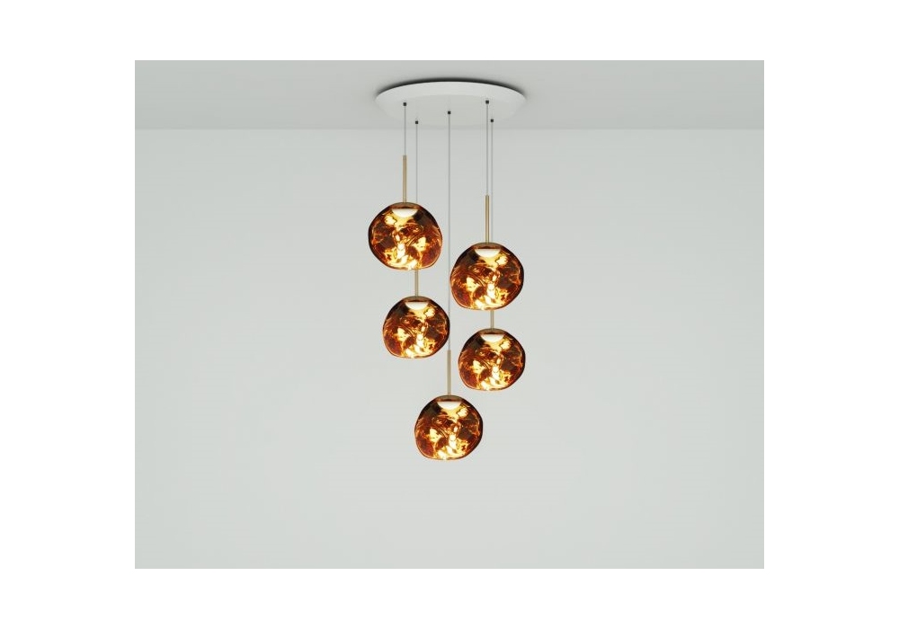 Melt Mini Round designed by Tom Dixon is a suspension system composed of five polycarbonate lamps. System available in different finishes.
