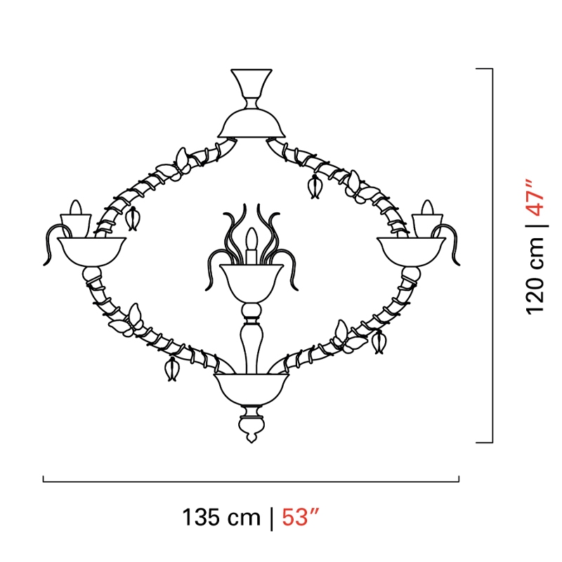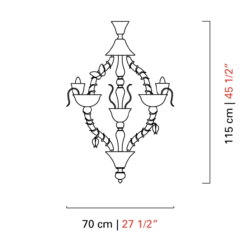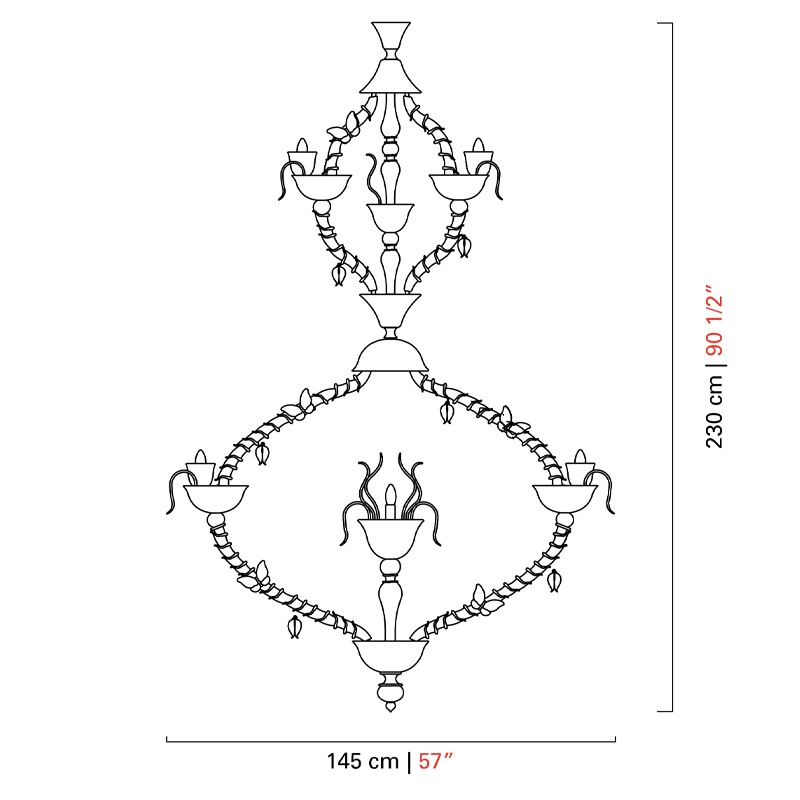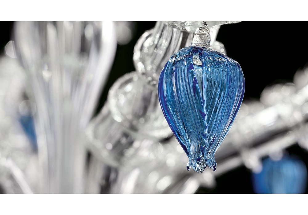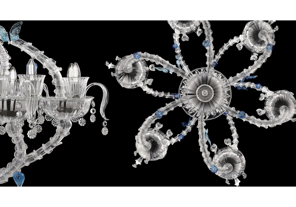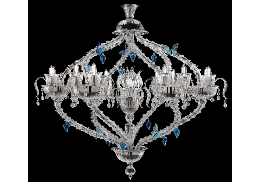 Adonis designed by Marcel Wanders studio for Barovier & Toso is a chandelier with metal supporting structure and decorations in galvanized gold or polished chrome. The lamp body is covered in Venetian glass with various crystal decorations and adopts dimmable LED or halogen light sources. Adonis is available in different finishes and sizes.