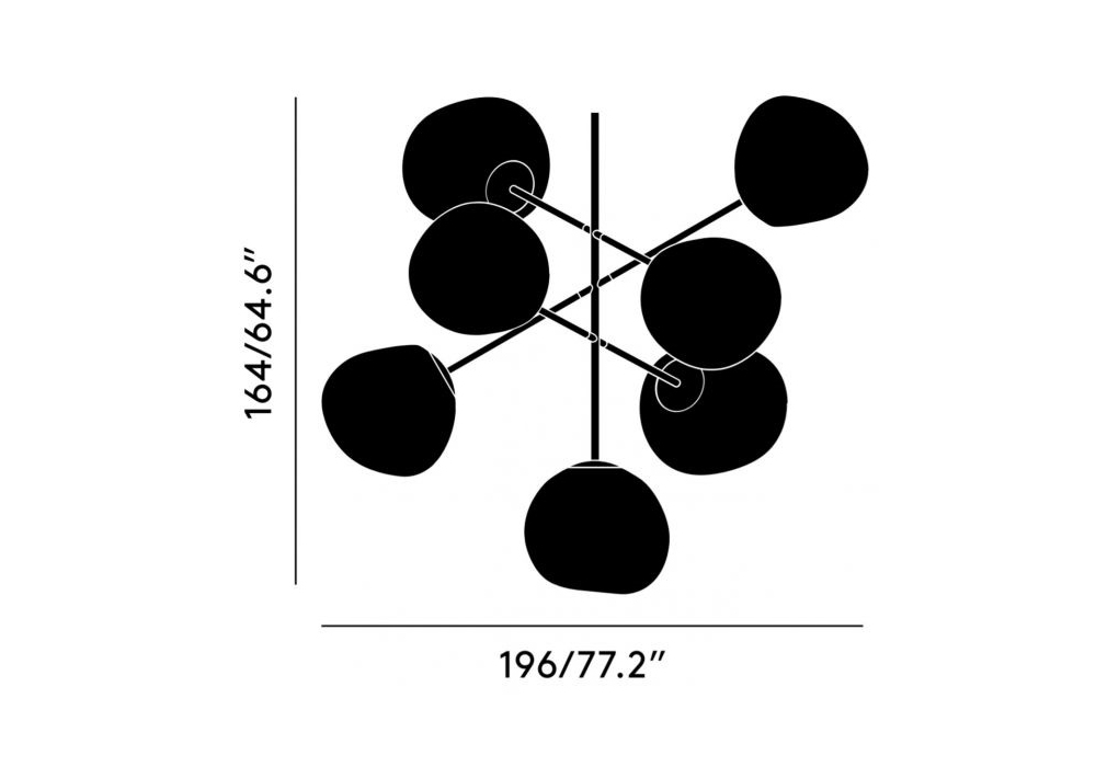 Melt Large designed by Tom Dixon is a chandelier made up of seven polycarbonate lamps, available in different finishes.