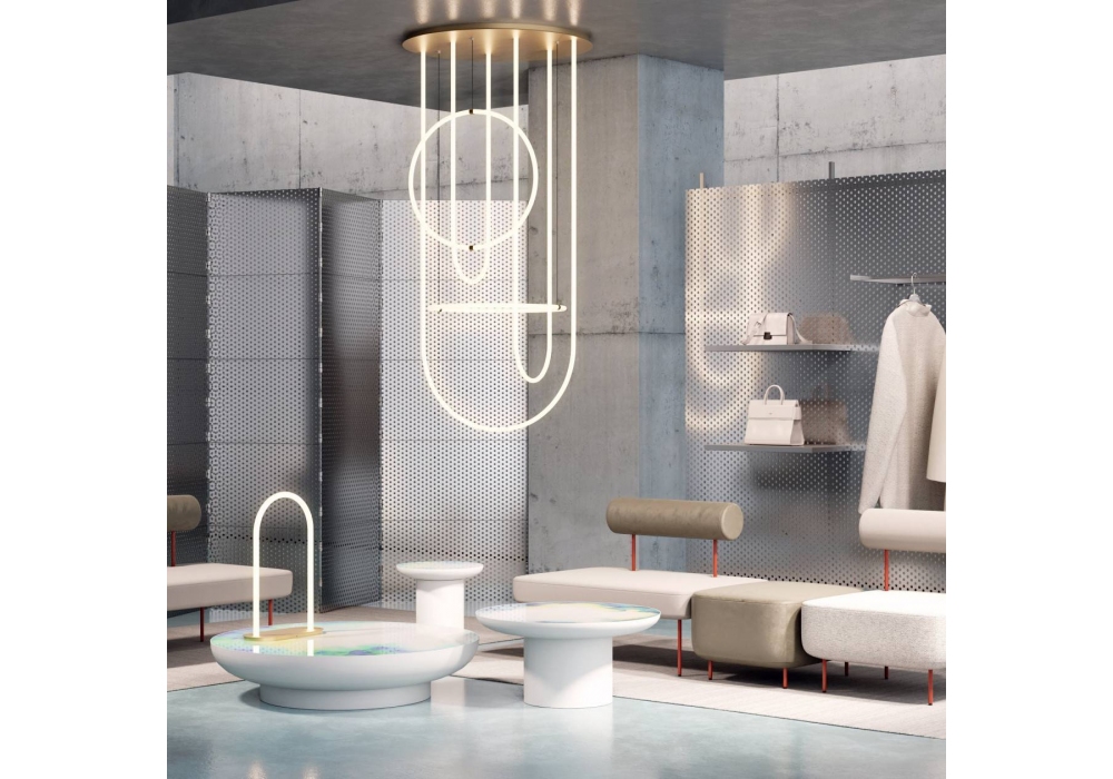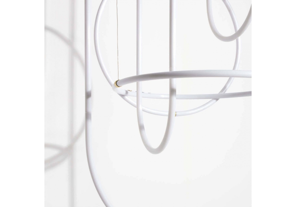 Unseen designed by Studiopepe for Petite Friture is a LED chandelier made with silicone, polycarbonate, brass and painted steel.