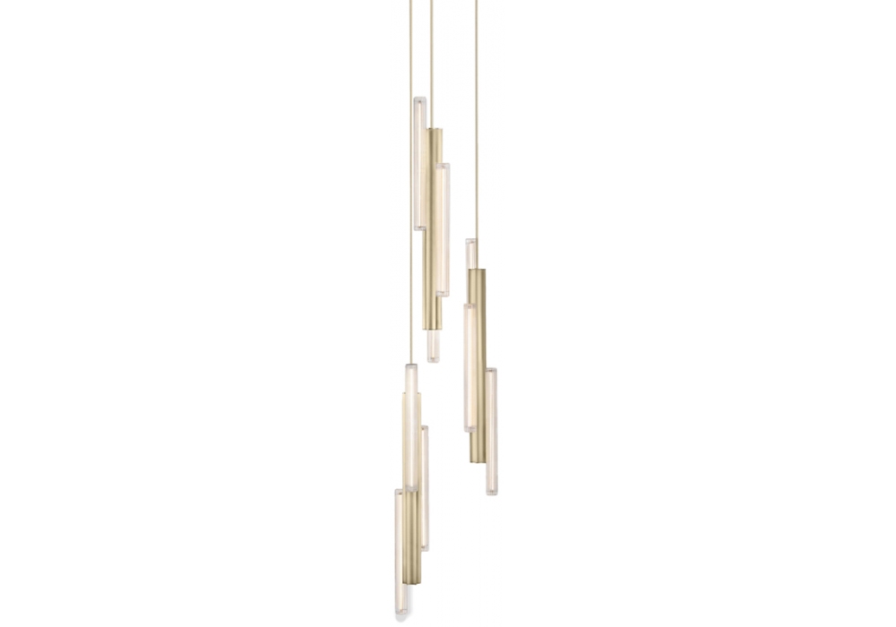Hail produced and designed by Lee Broom is a structured chandelier with aluminum body and striped glass diffuser. The light source used is of the dimmable LED type. Hail is available in different models and finishes.