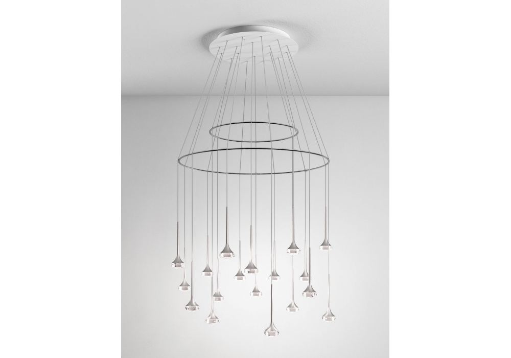 Fairy designed by Manuel Vivian for Axo Light is a chandelier with metal structure and crystal diffusers. Available in different finishes and sizes.
