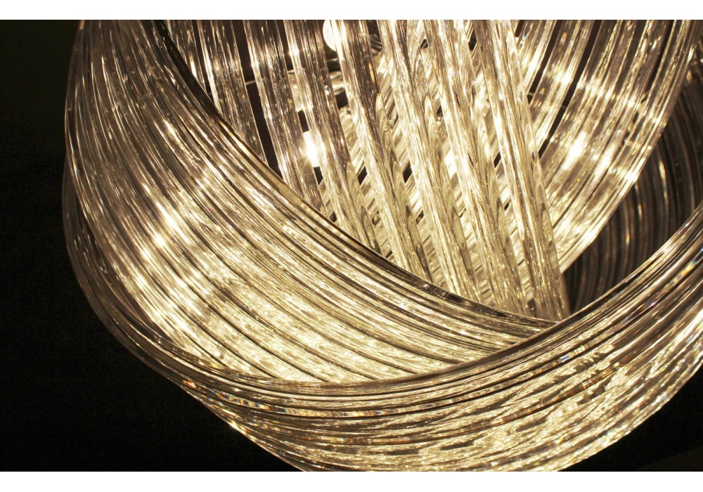 Elisabeth designed by Giuseppe Iasparra for Longhi is a chandelier in woven Murano crystal with octagonal base and metal structure.