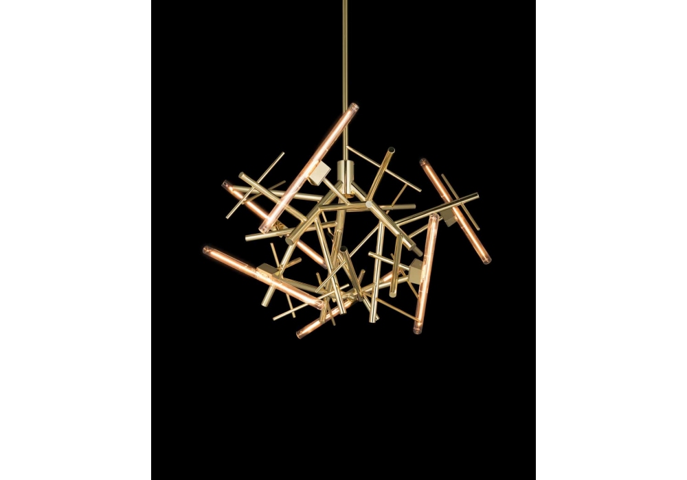 Linea Round designed by William Brand for Brand Van Egmond is a chandelier made with metal structure and glass diffusers.