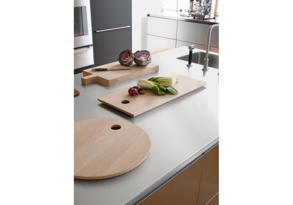 AC07 Cut designed by Philipp Mainzer for E15 is a cutting board made of solid European oak characterized by a hole for easier handling. Available in different dimensions.