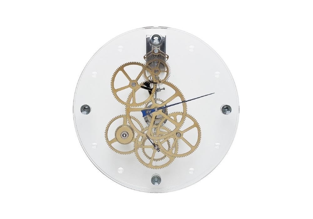 With Presto designed by Teckell & Takto, time becomes emotion. The modern definition of time. The finest engineering and esthetics combine for a precious and perfect timepiece. Two see-through crystal shells surround a 24k-gold-plated mechanism. Due to its spring-wound system, the mechanism is compact without sacrificing the precision for which Teckell clocks are famous. The spacers that separate the two sheets are also handcrafted masterpieces: lathed transparent crystal.