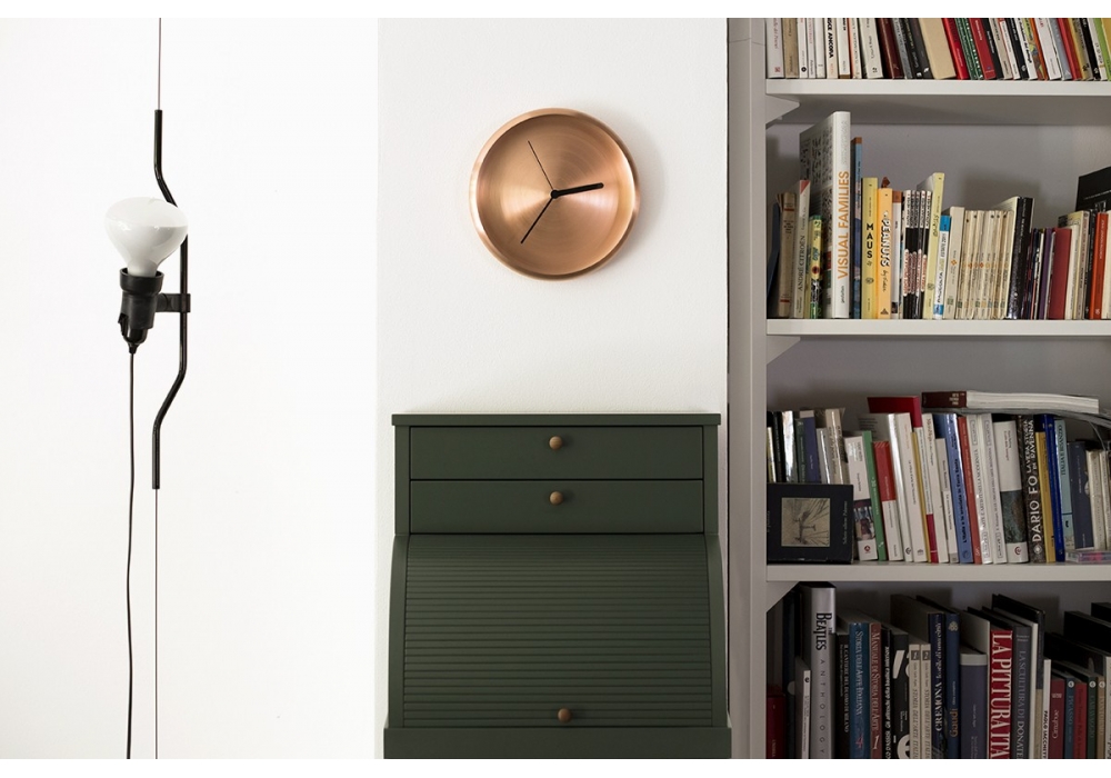 Turi designed by Dario Gaudio for InternoItaliano is a wall clock in copper turned by hand inspired by the crockery and pots that adorned old kitchens walls. Turi's lines are soft and they adapt to any style and any type of furnishings.