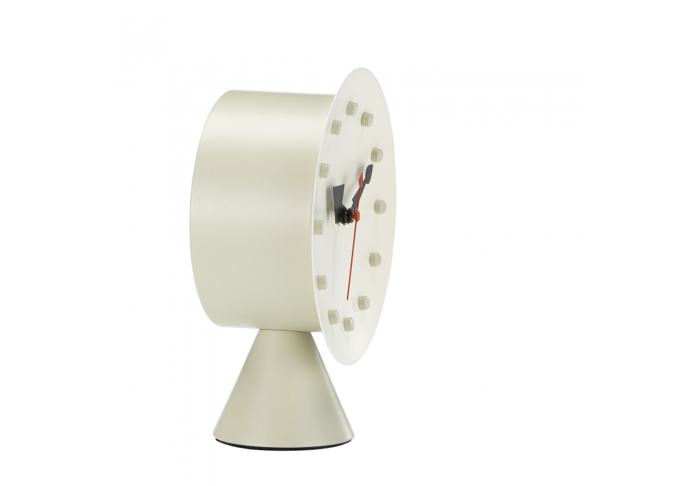Cone Base Clock designed by George Nelson for Vitra is a table clock in painted metal foil powder.