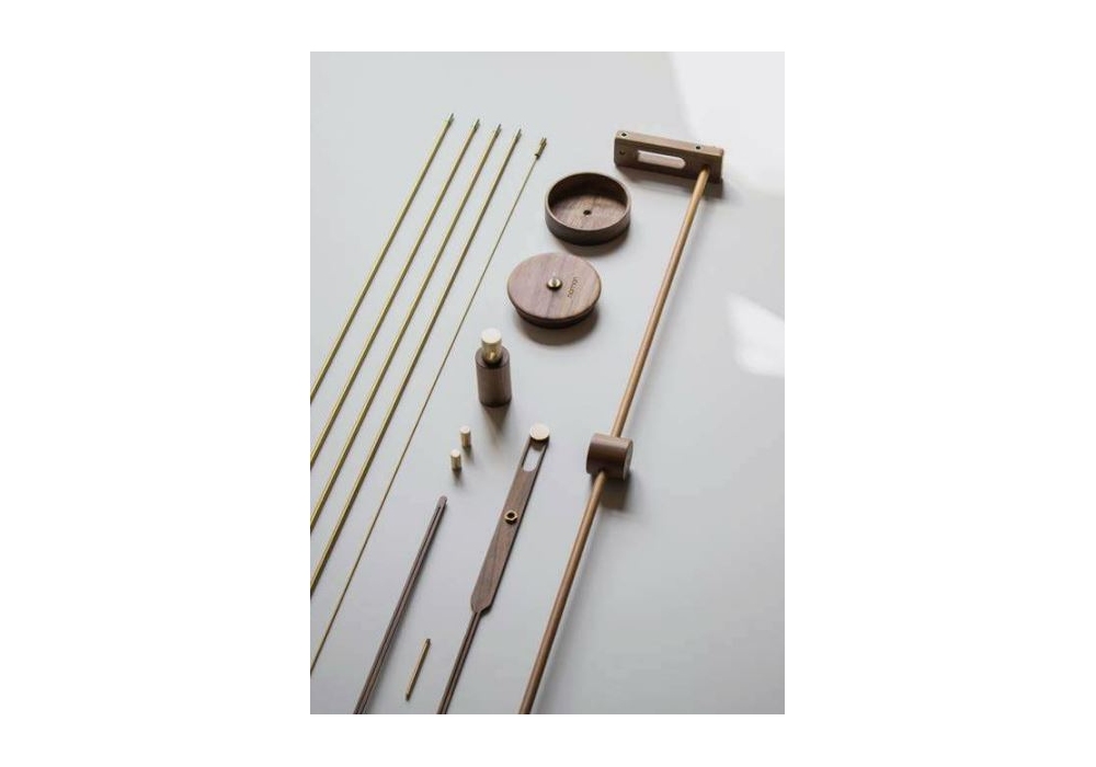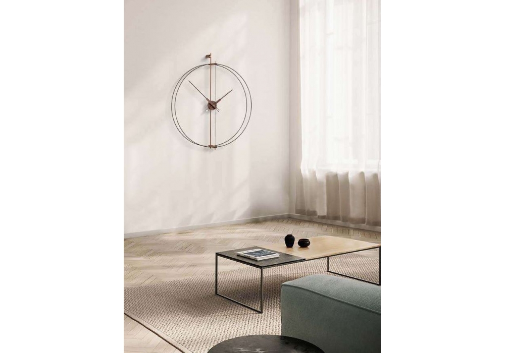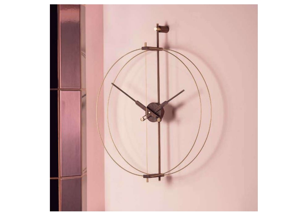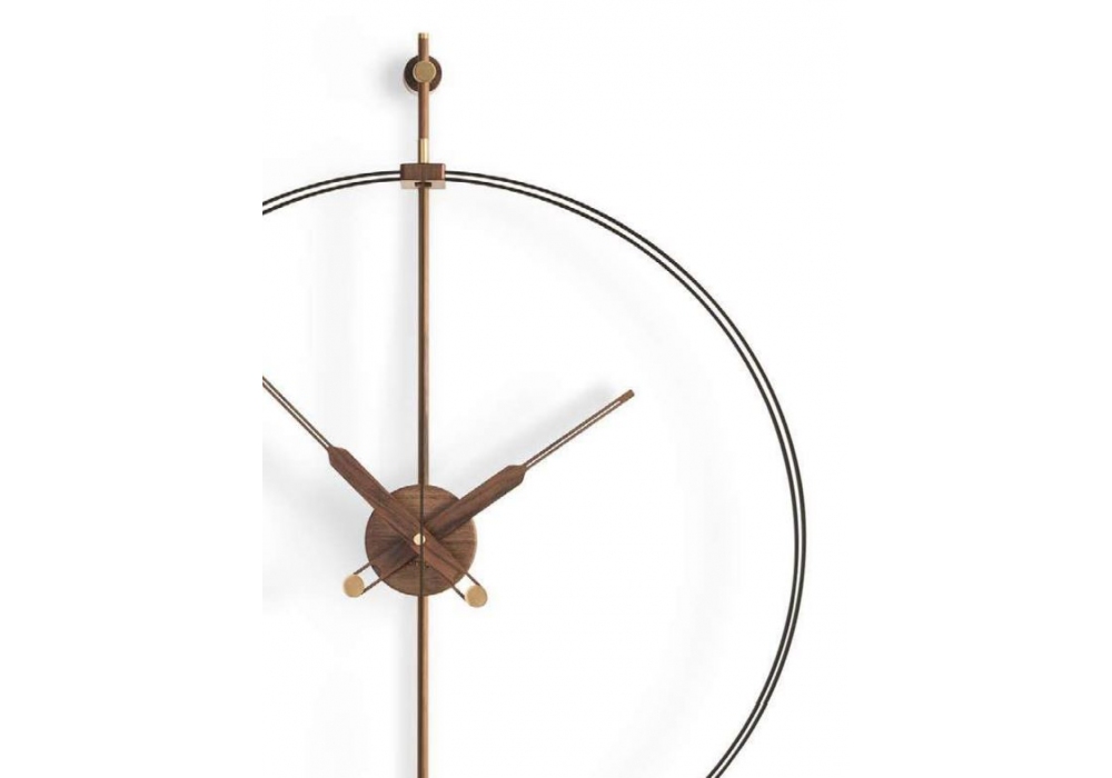 Barcelona Premium designed and produced by Nomon is a clock with walnut wood box, walnut wood hands and polished brass. The ring is available in a brass or black fiberglass finish.