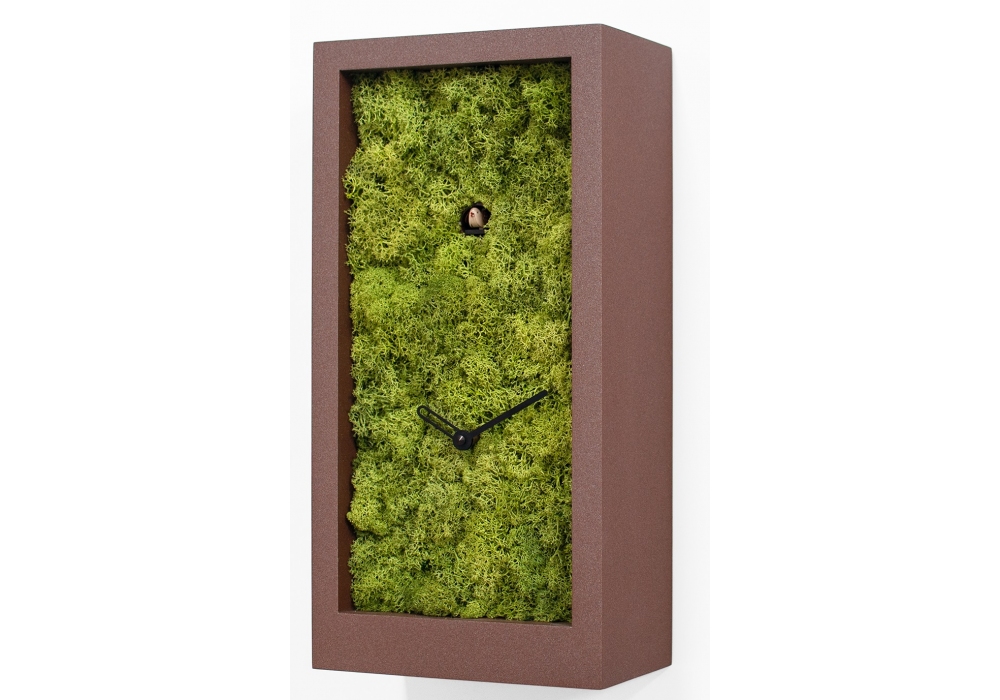Amazon designed by Ewald Winkelbauer for Progetti is a wall or table cuckoo clock made of wood and painted with non-toxic paints. The cuckoo movement, of high quality German design is powered by two batteries, has a photosensitive sensor that does not sing when it is dark and has a push button that allows you to adjust the intensity of the sound or turn it off altogether. Available in different finishes.